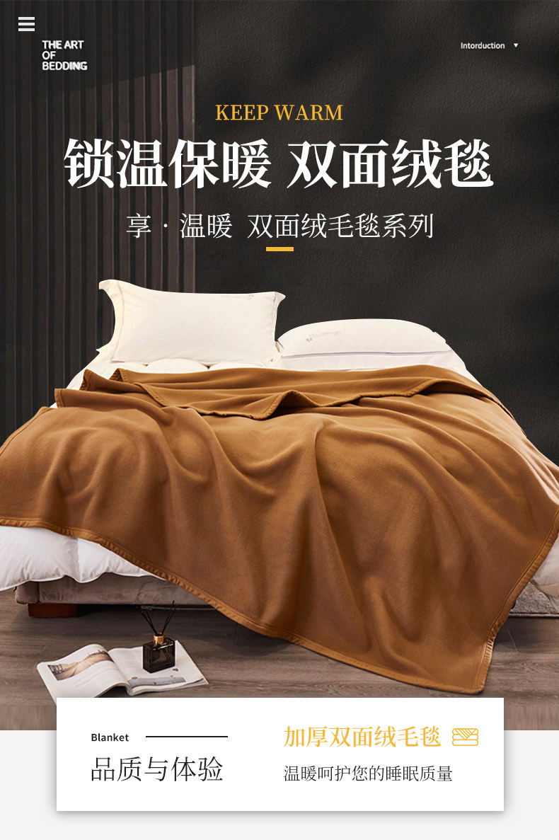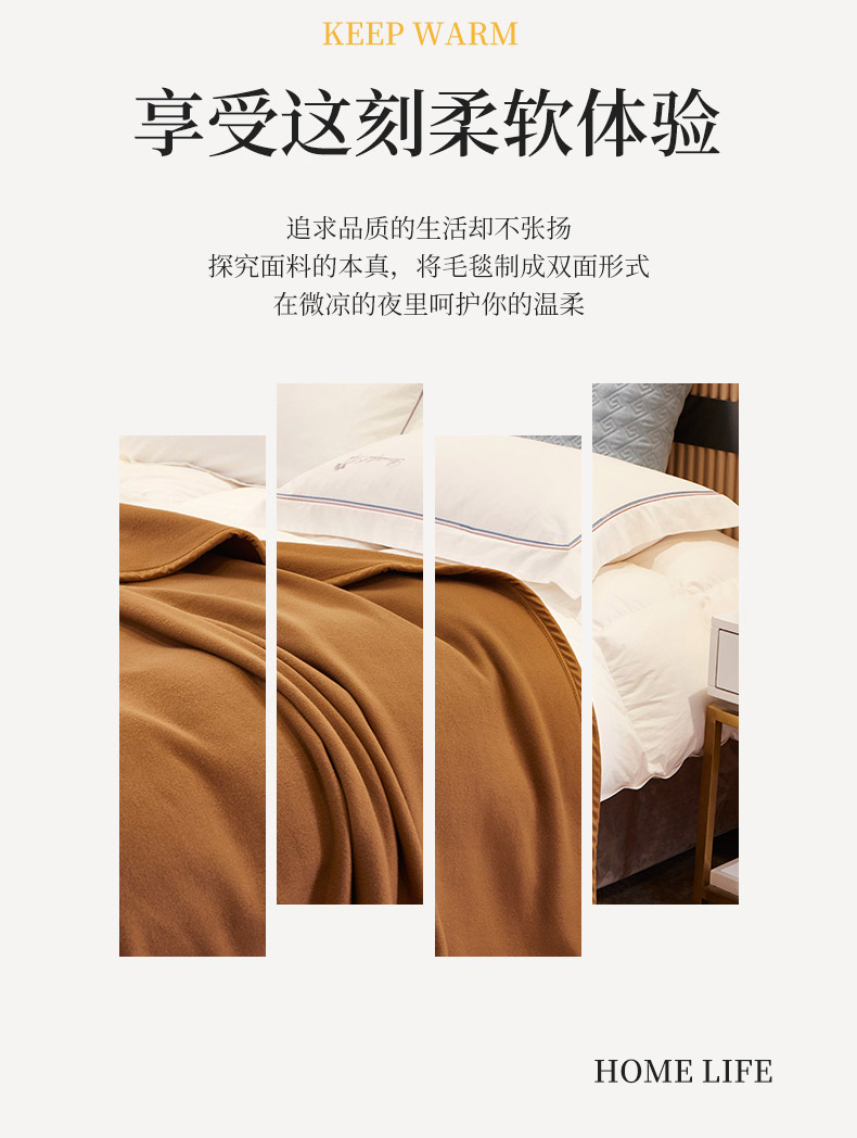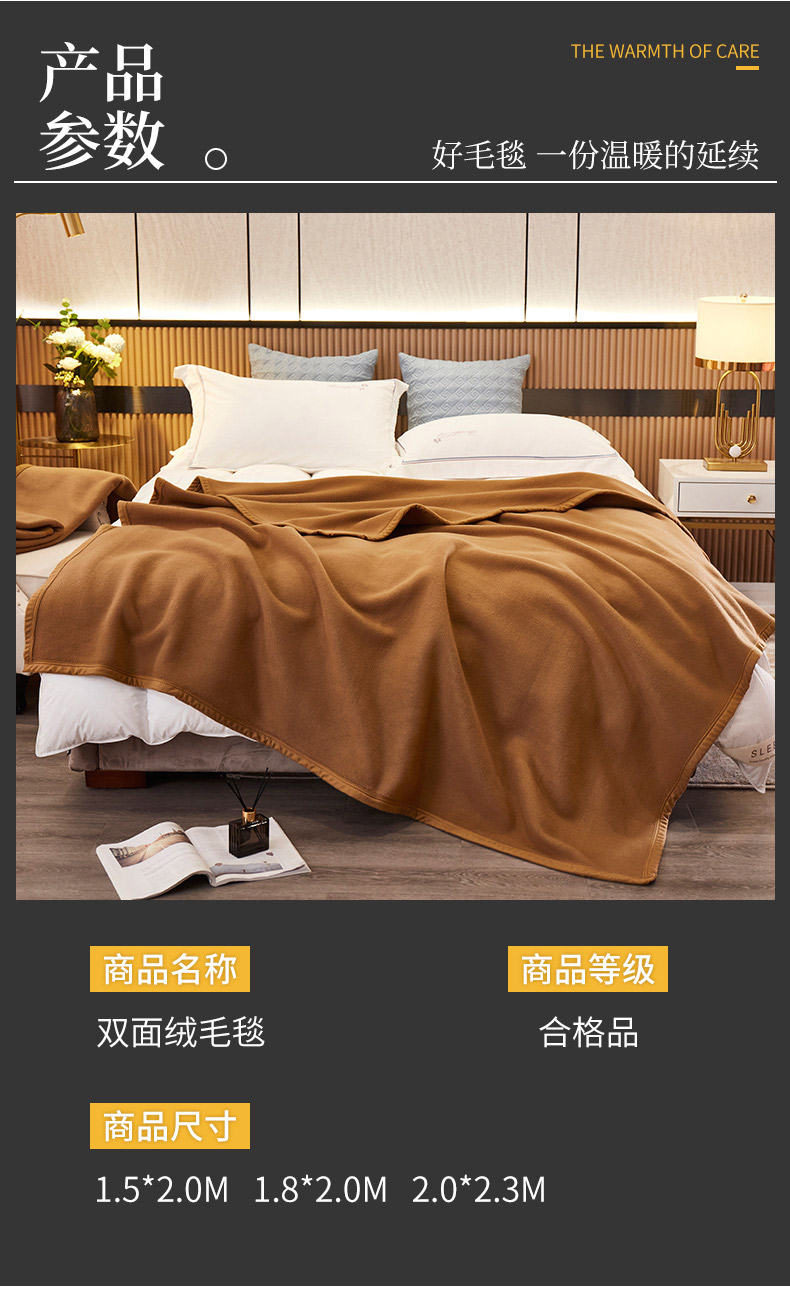 商品名称:(总)悦织湾家纺 2025新款双面绒宾馆酒店毯涤纶仿羊绒毯纯色驼色毛毯可供跨境可开专票可定制颜色尺寸