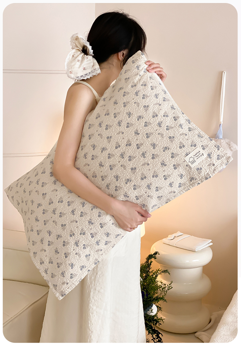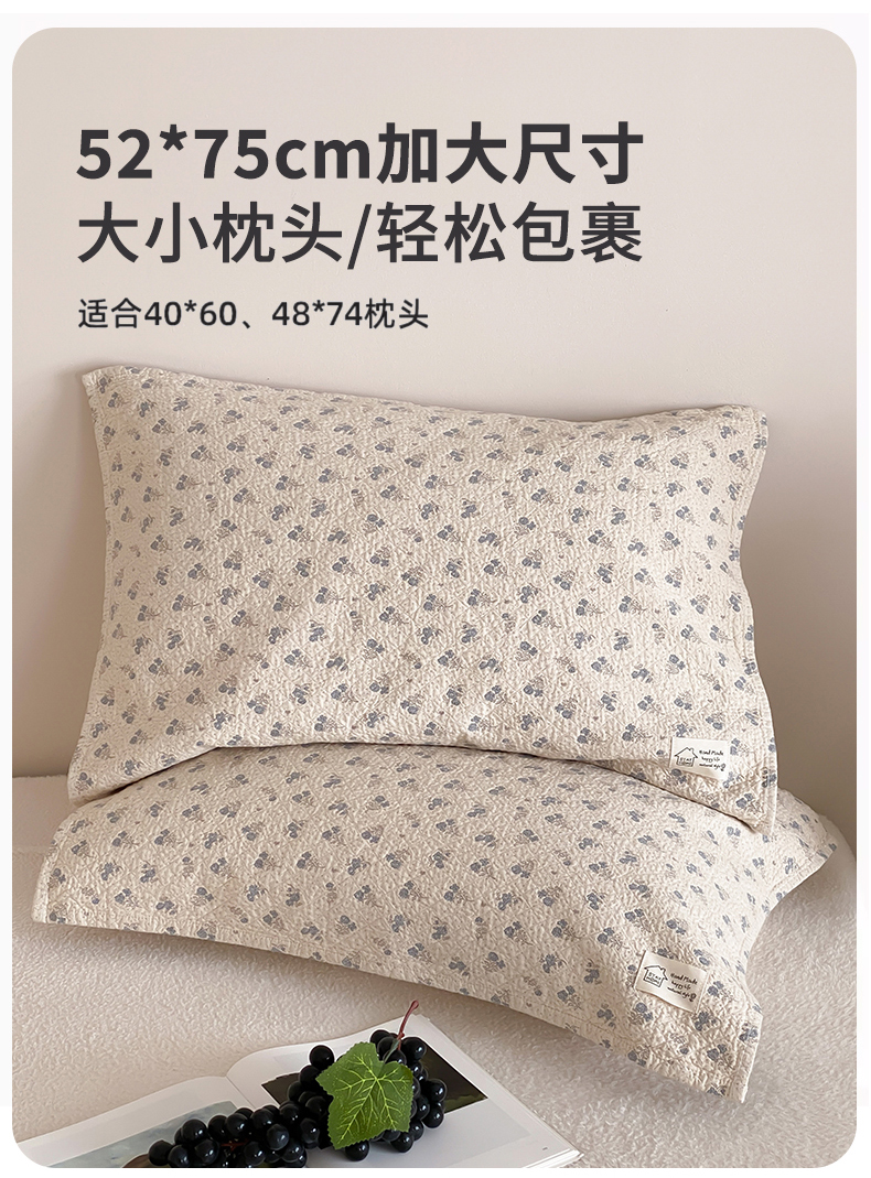 商品名称:麻依 2025新款安心棉枕巾四层全棉纱布枕头皮 韩系小樱桃