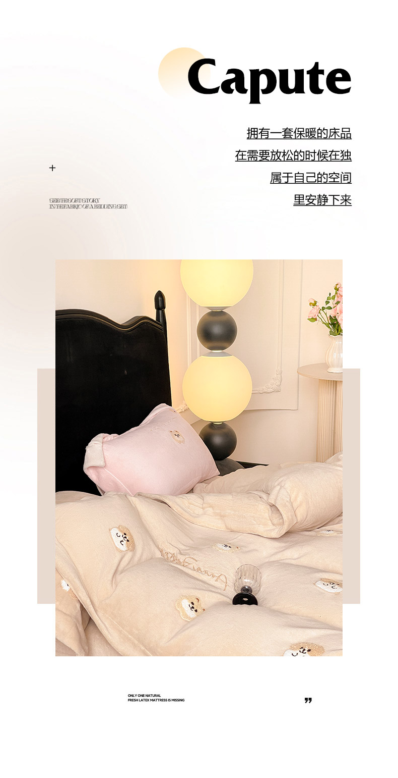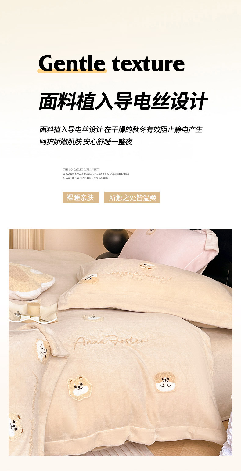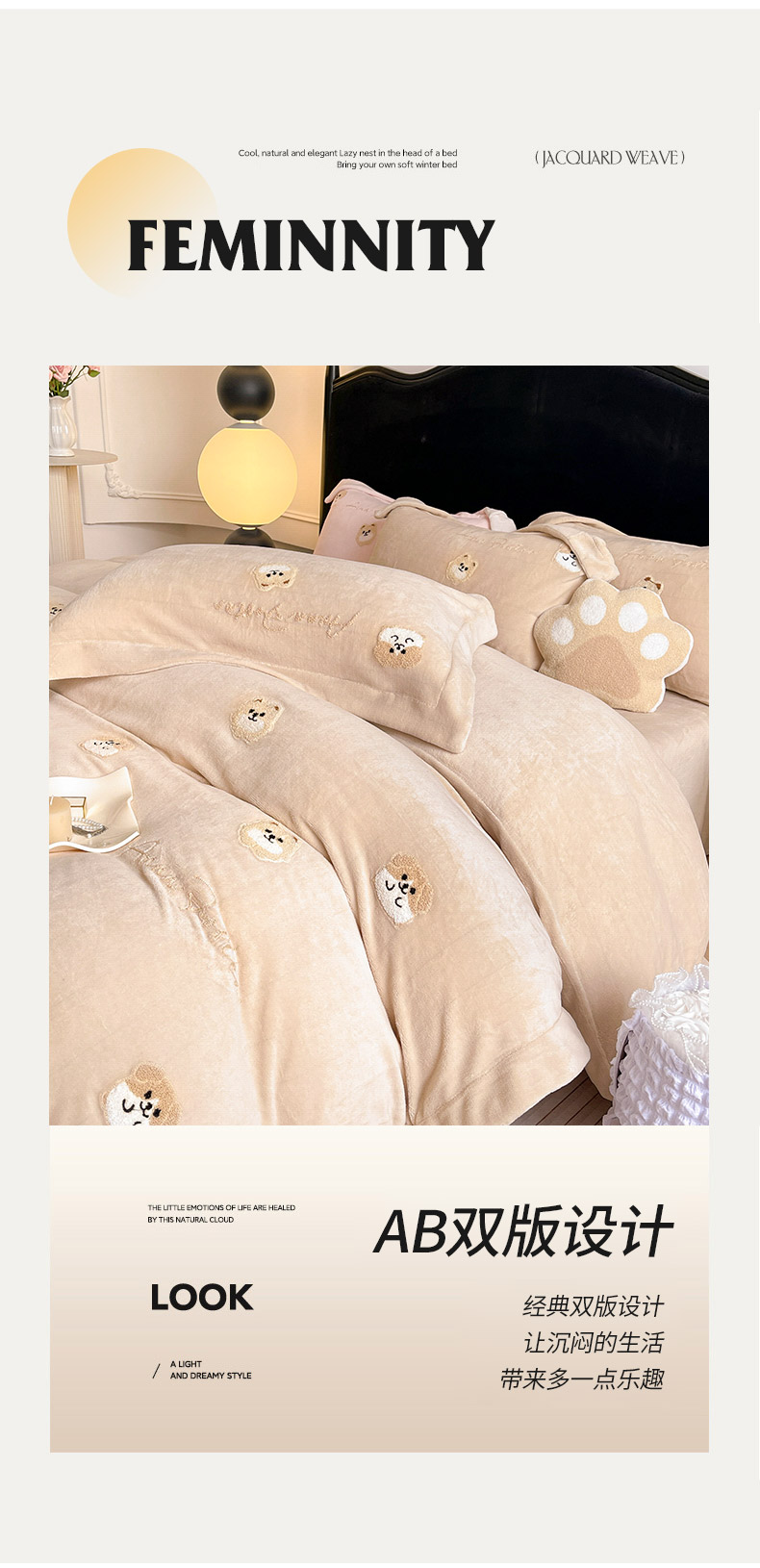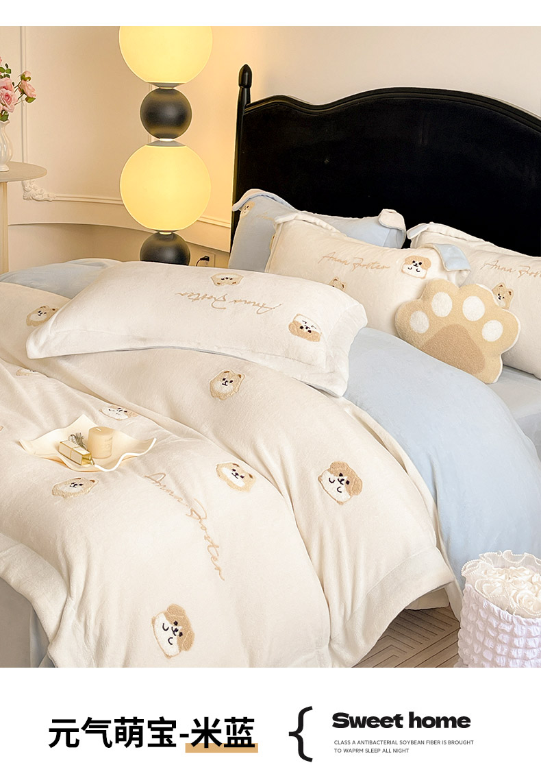 当前位置: 91家纺网 > 商品网购 > 床品套件 > 四件套 > 牛奶绒四件套 > 2025新款A类双面加厚保暖加绒宝宝绒刺绣被套床单卡通可爱床上用品牛奶绒四件套-元气萌宝 元气萌宝-暖棕