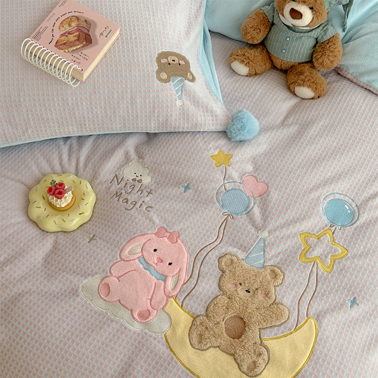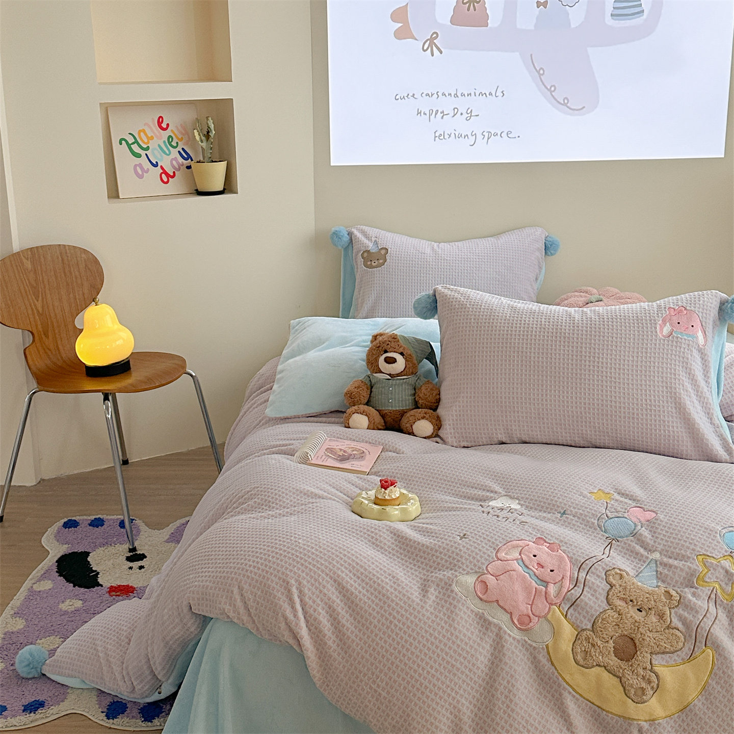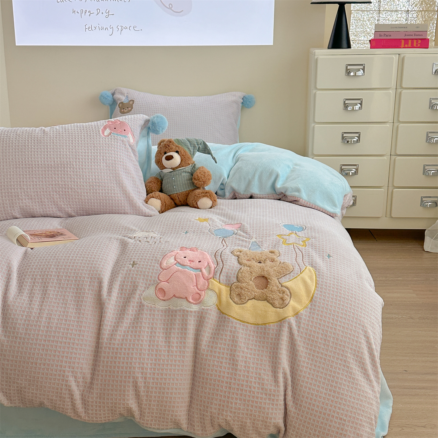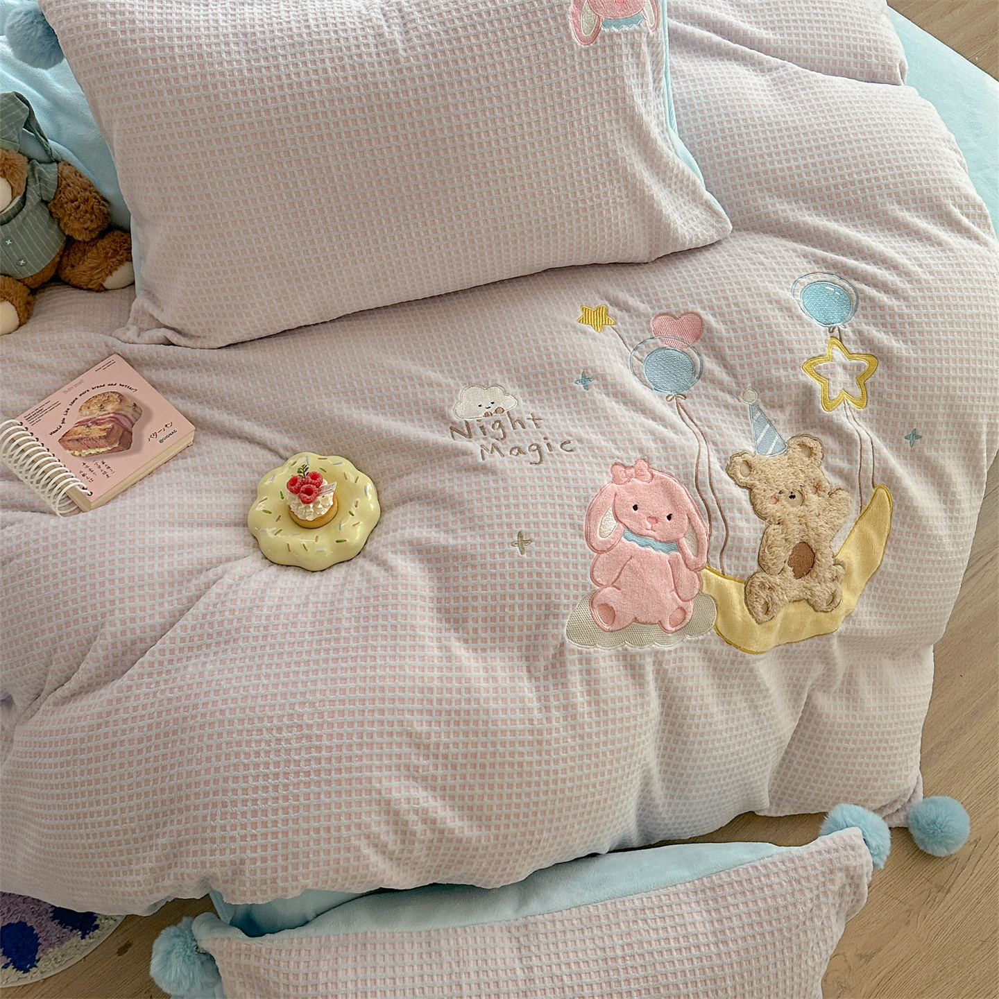 柚子YOUTH 2025新款华夫格提花绒刺绣四件套 月亮气球