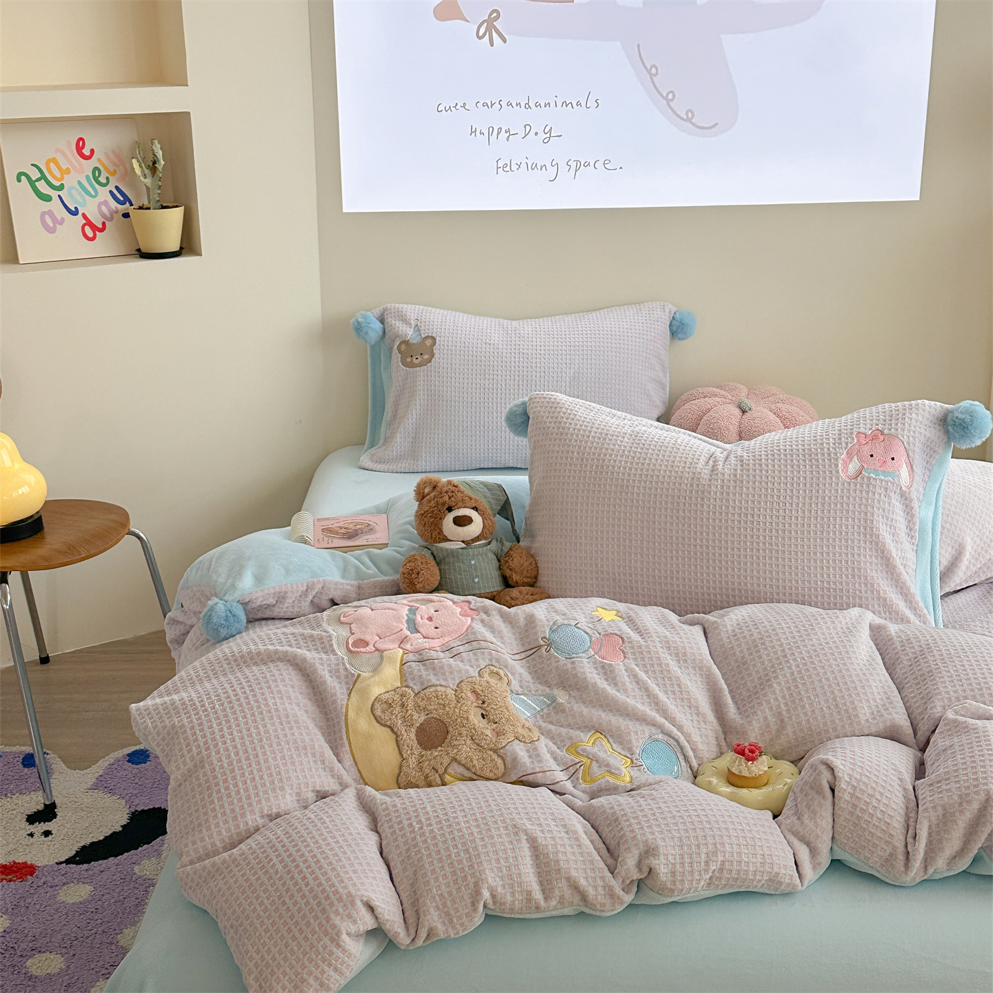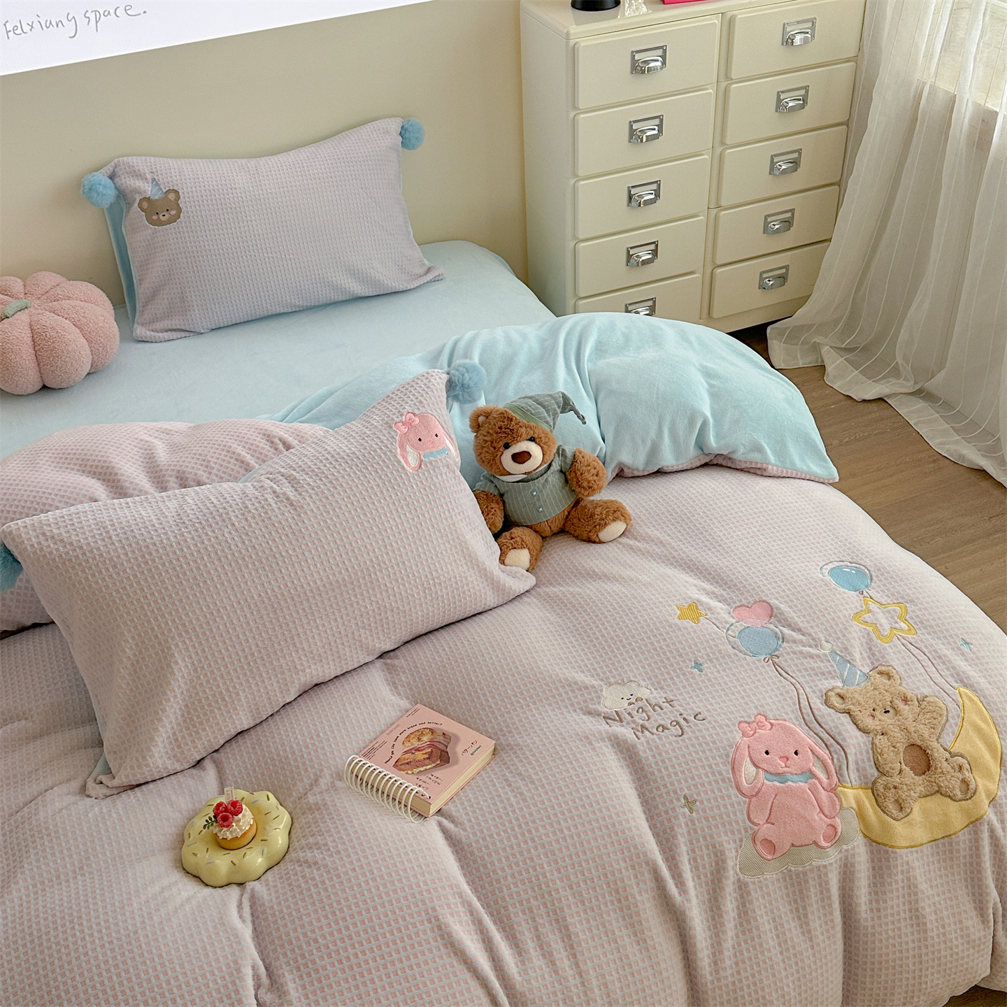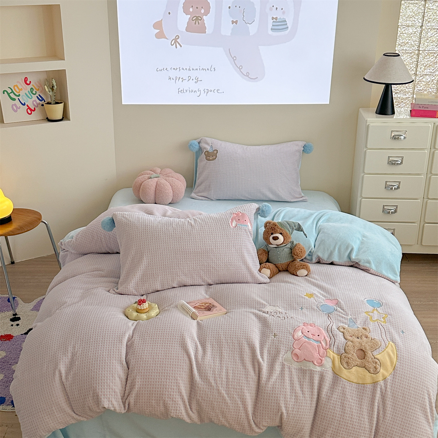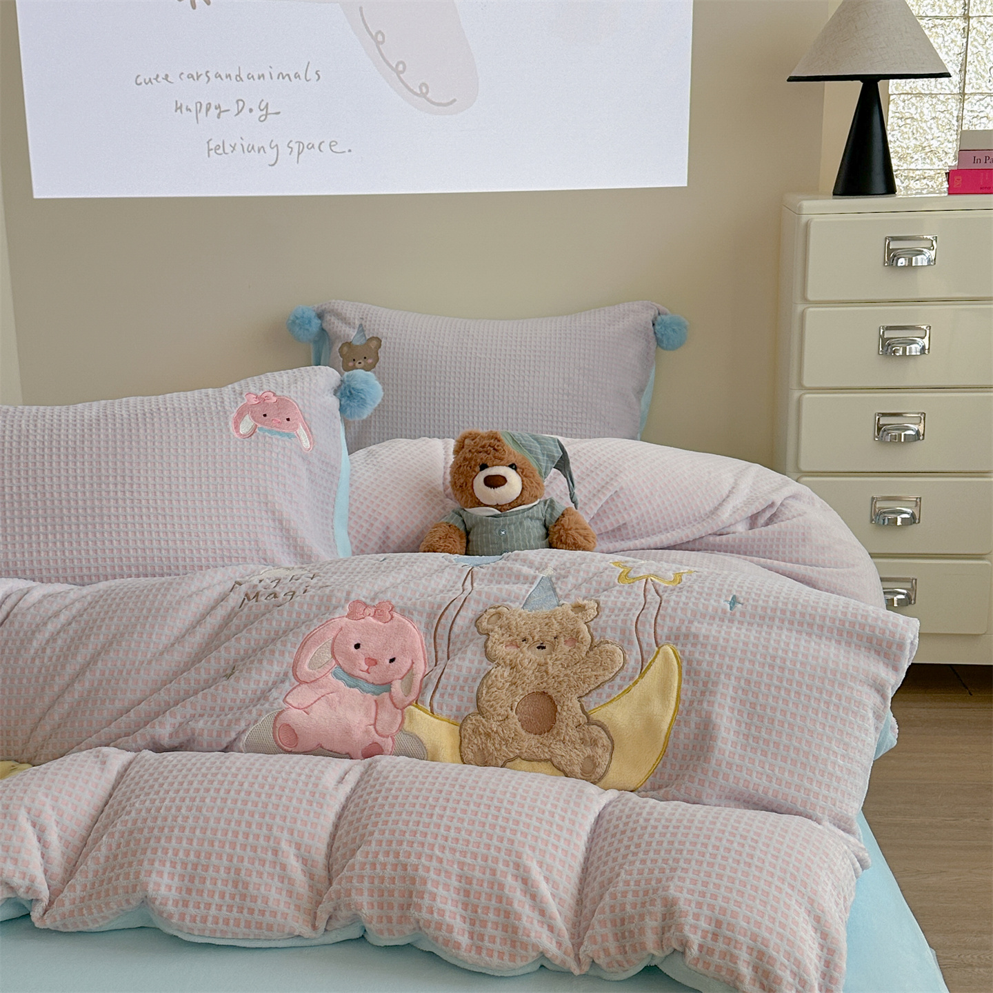 柚子YOUTH 2025新款华夫格提花绒刺绣四件套 月亮气球
