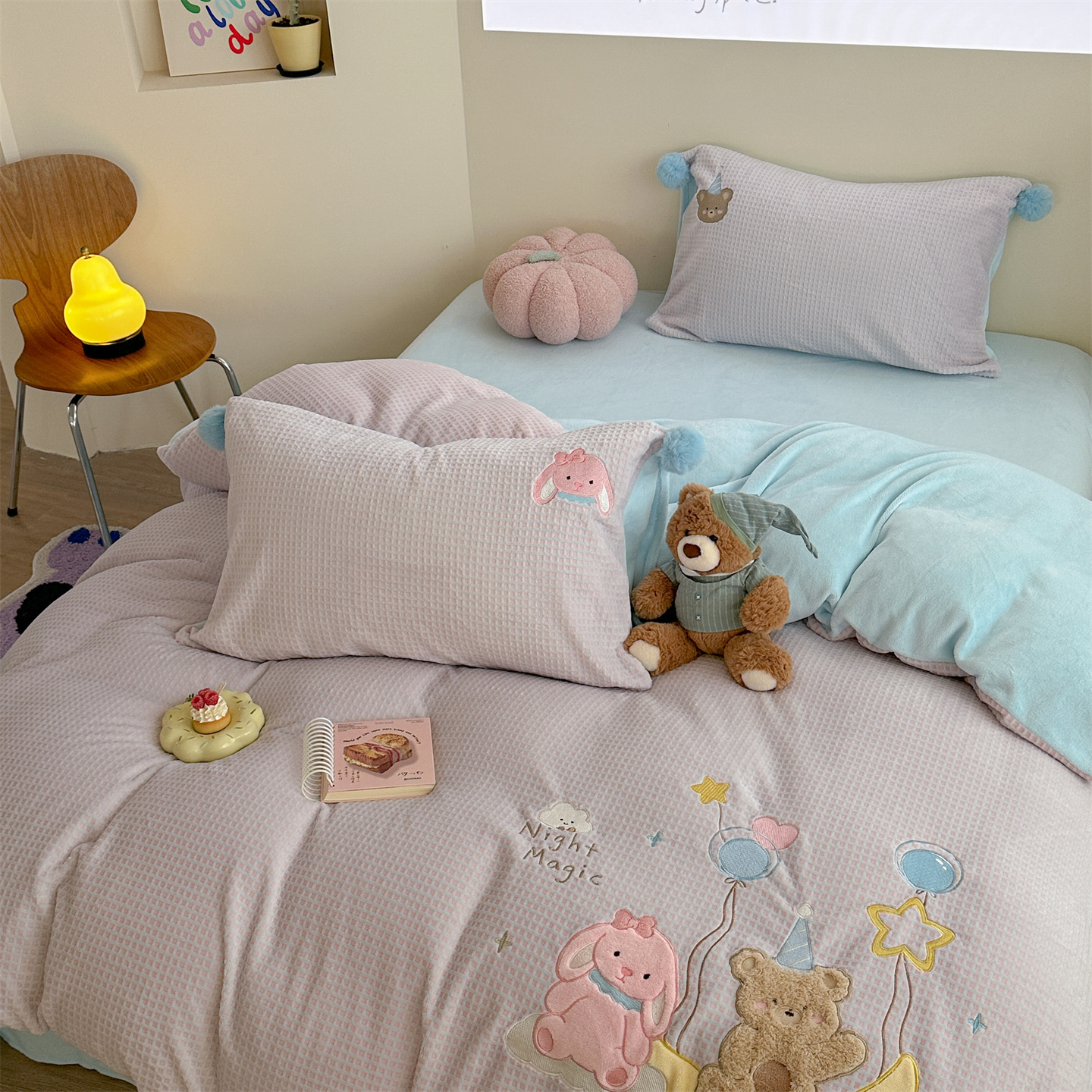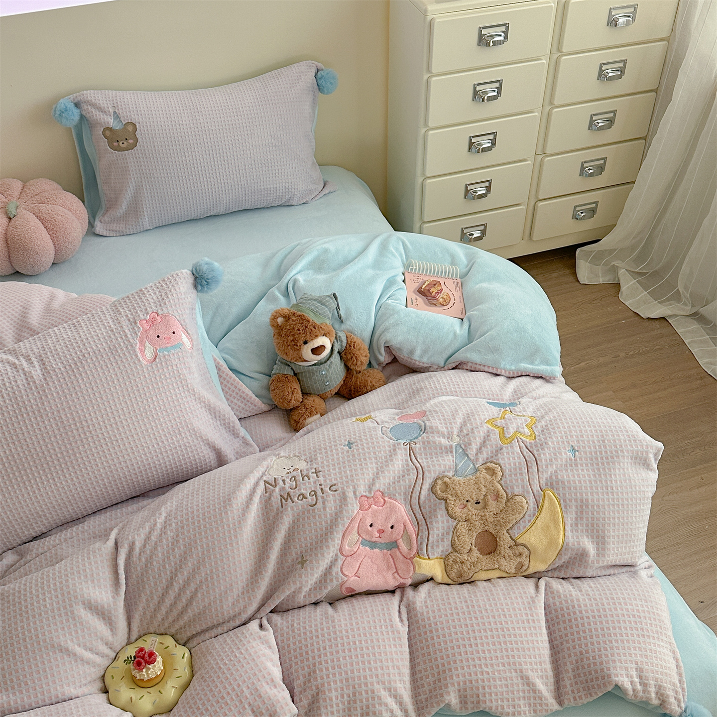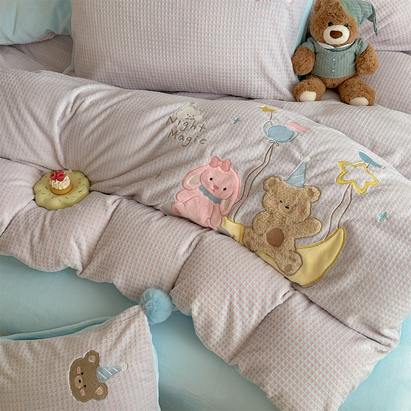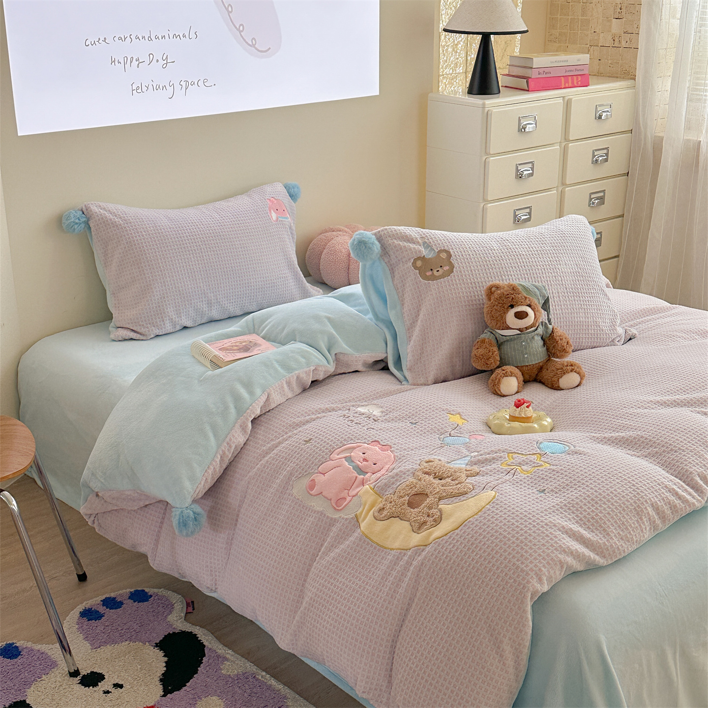 柚子YOUTH 2025新款华夫格提花绒刺绣四件套 月亮气球