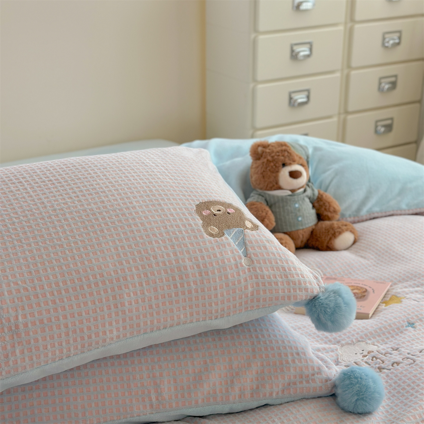 (总)柚子YOUTH 2025新款双面泰迪绒毛巾绣四件套,甜甜圈,快乐企鹅,森林聚会,甜酷KT,小茄子,雪人王国