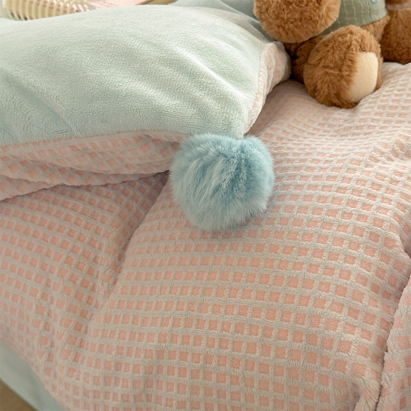 (总)柚子YOUTH 225新款全棉双层纱球球款四件套,薄荷绿条,波点霉霉,波点小丑,蓝心,芊芊结,碎花点点