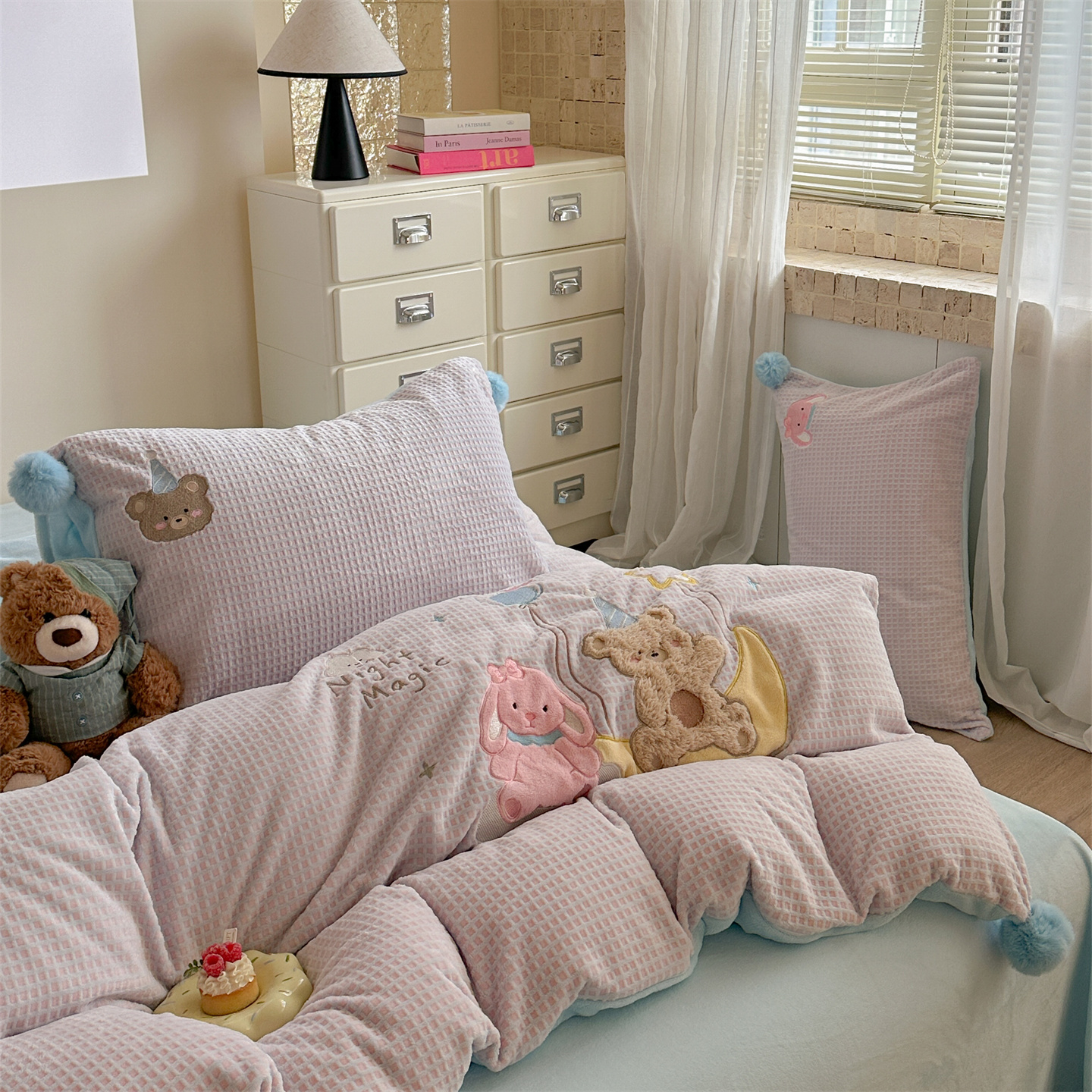 (总)柚子YOUTH 2025新款全棉纯棉工艺款13070贴布绣四件套,爱心小象,毛绒小狗,蘑菇女孩,星星法师