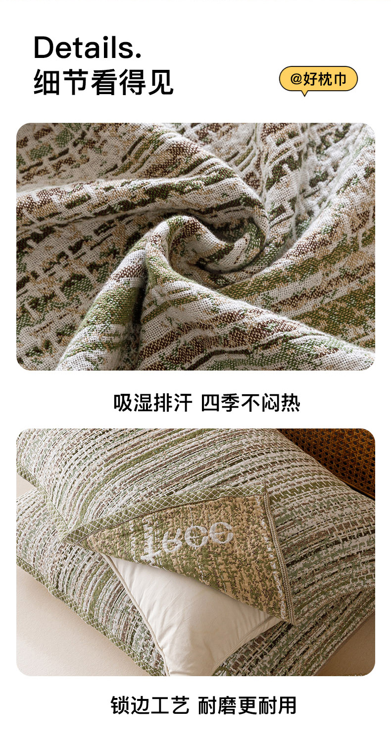 爱港家纺 2025新款全棉巴恩风纱布枕巾 隔热 耐脏,防滑 牧野