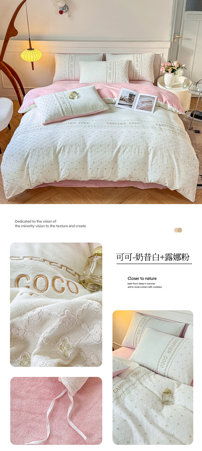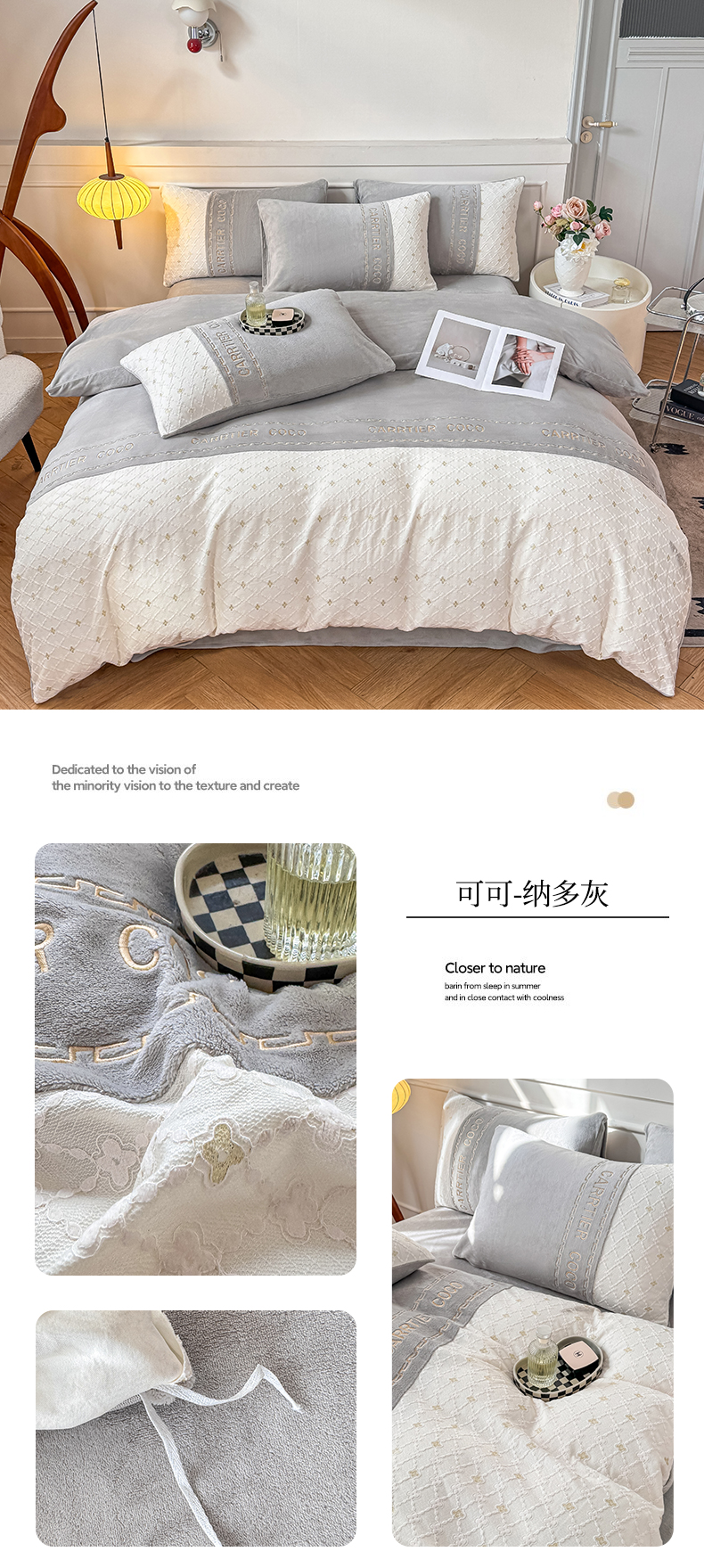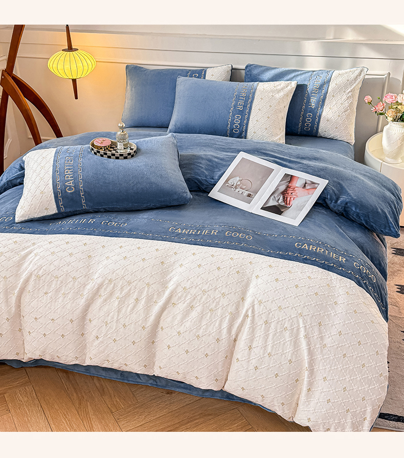 当前位置: 91家纺网 > 商品网购 > 床品套件 > 四件套 > 牛奶绒四件套 > 灰鲸 2025新款牛奶绒拼接刺绣雕花四件套-可可 可可-繁星蓝