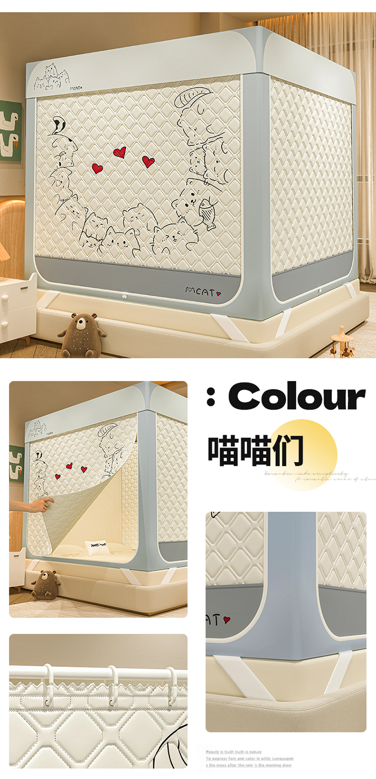 (总)2025新款卡通夹棉遮光保暖可拆卸蚊帐卧室通用
