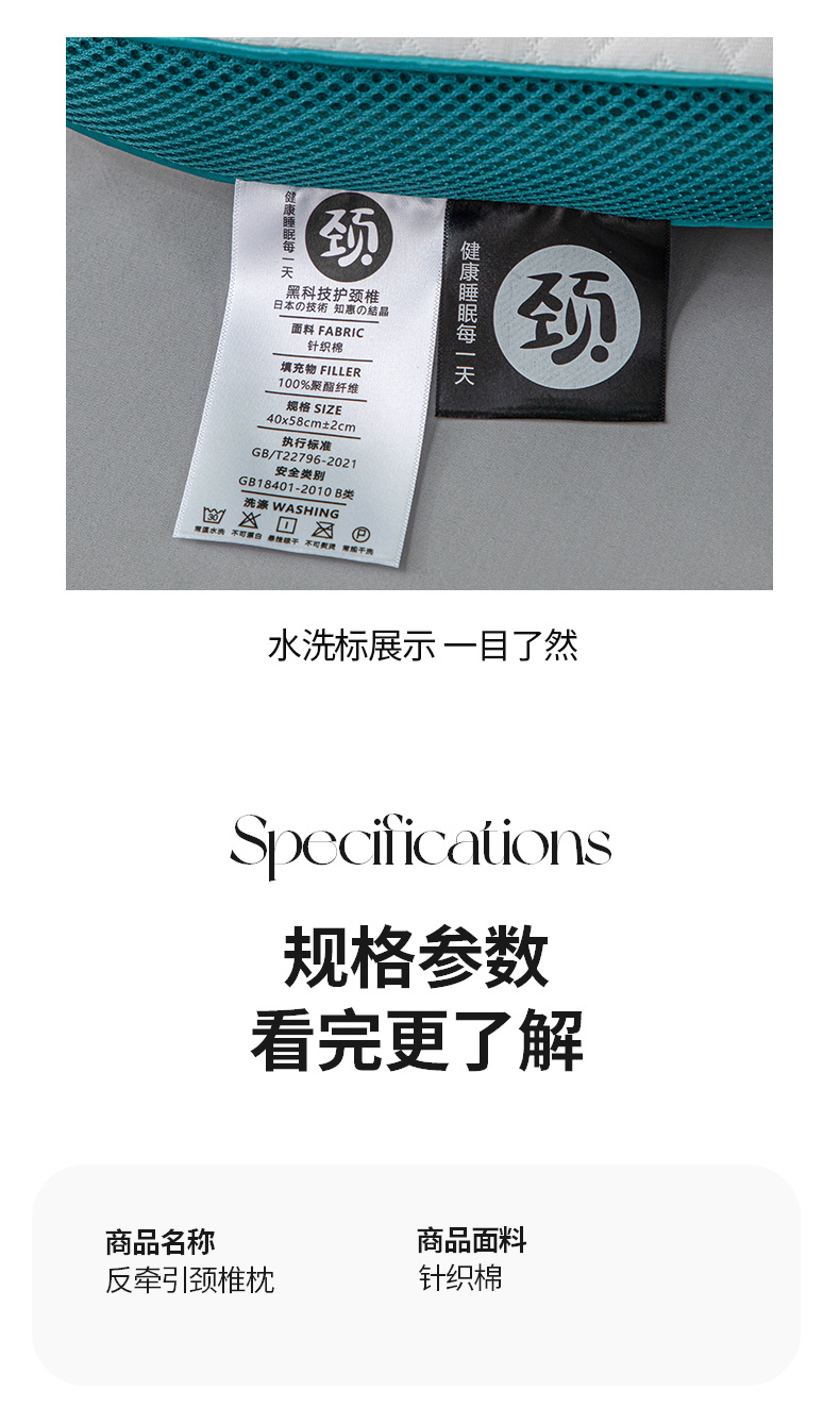 (总)珍贝家纺 2025新款反牵引颈椎枕枕头枕芯,颈枕-咖色边,颈枕-蓝色边