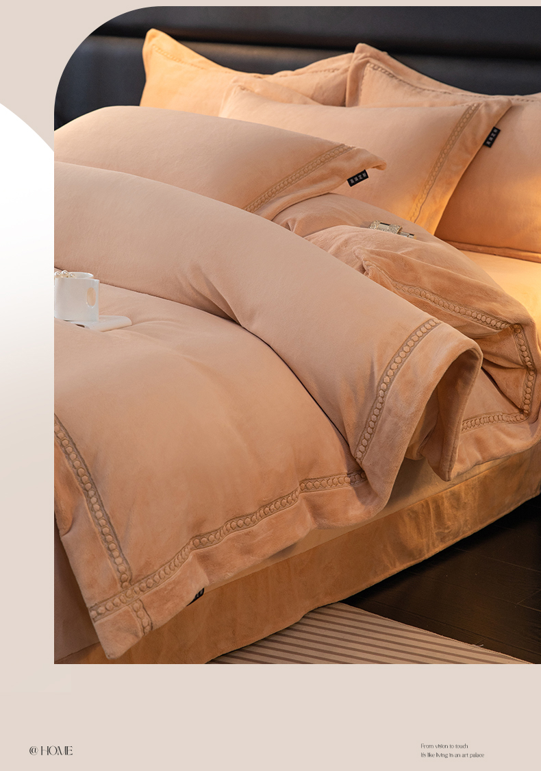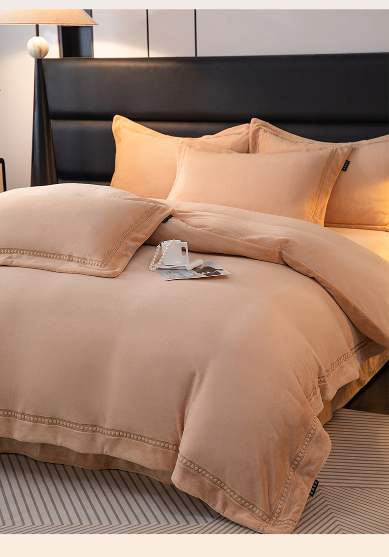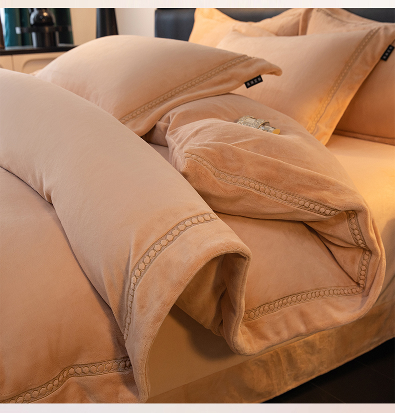 暖洋家纺 2025新款暖芙绒纯色刺绣款套件四件套 香槟色