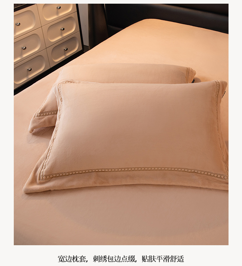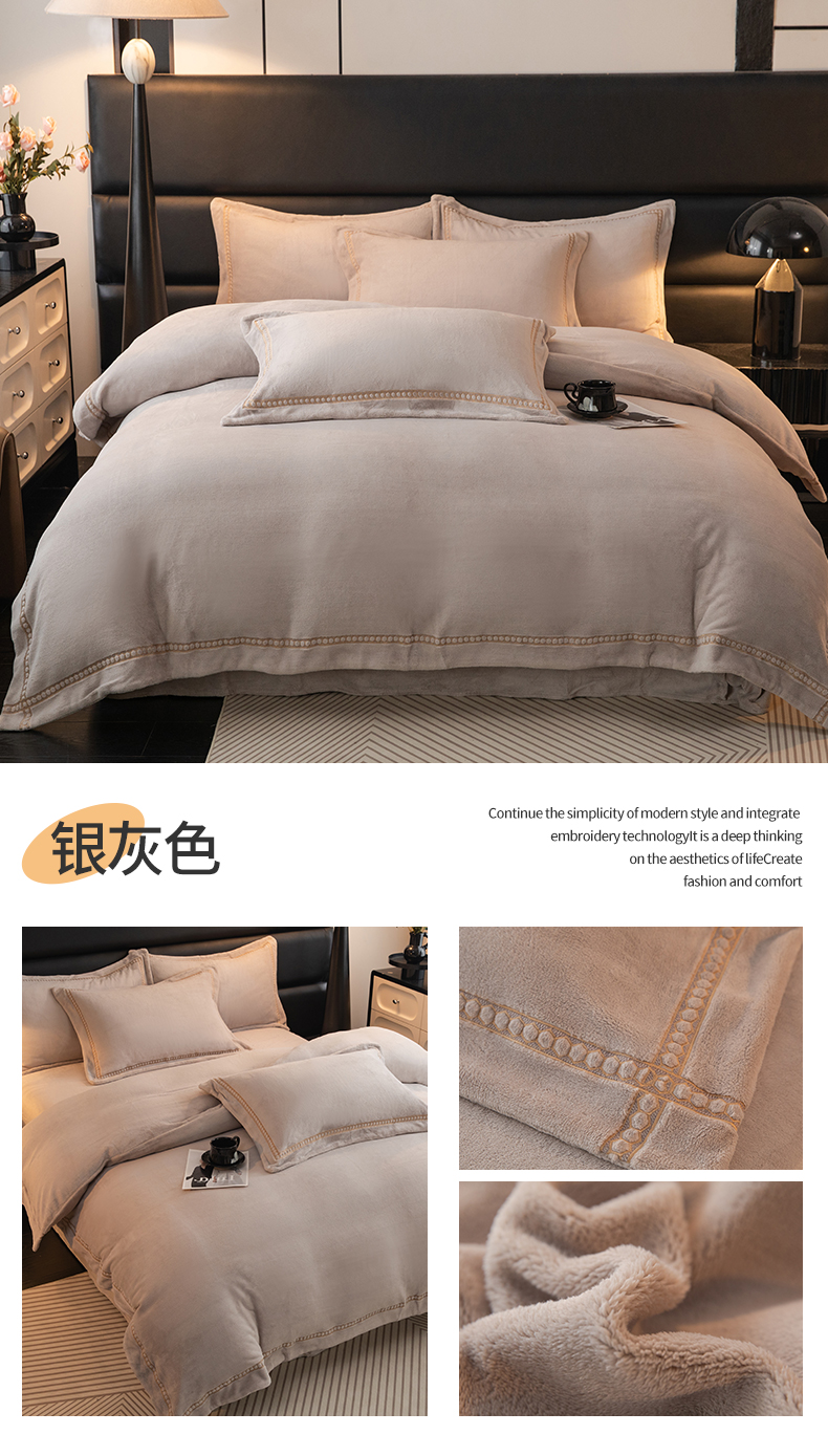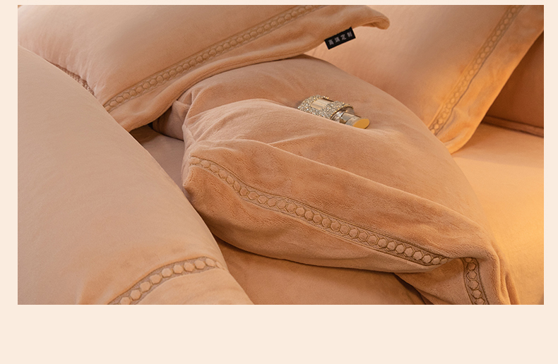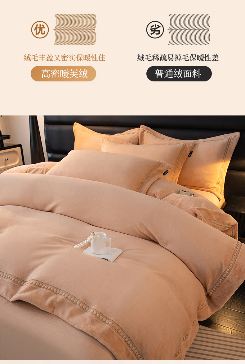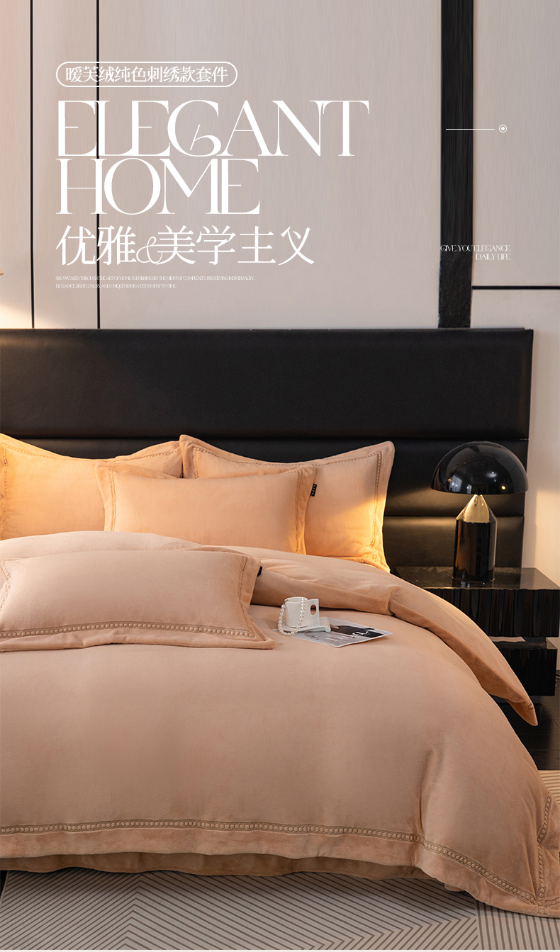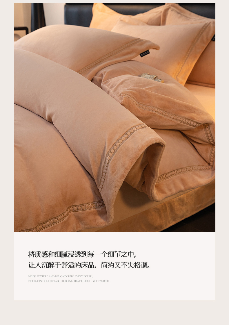 商品名称:暖洋家纺 2025新款暖芙绒纯色刺绣款套件四件套 香槟色