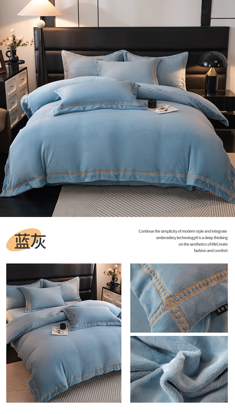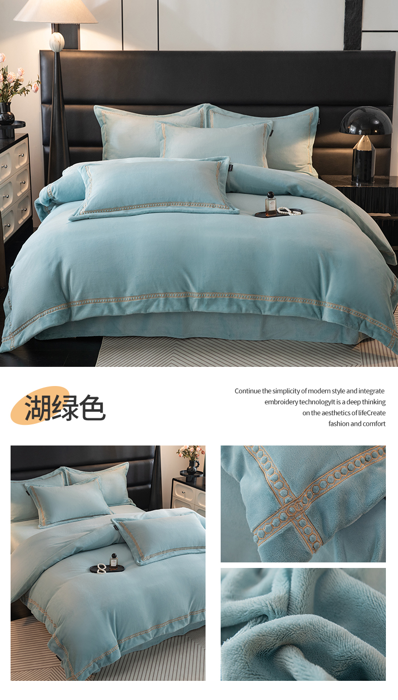 (总)暖洋 2024新款A类暖芙绒纯色刺绣工艺款牛奶绒四件套,爱码橙,湖绿色,蓝灰,藕粉,香槟色,杏仁,银灰色,玉色,富贵,血青,胭脂红