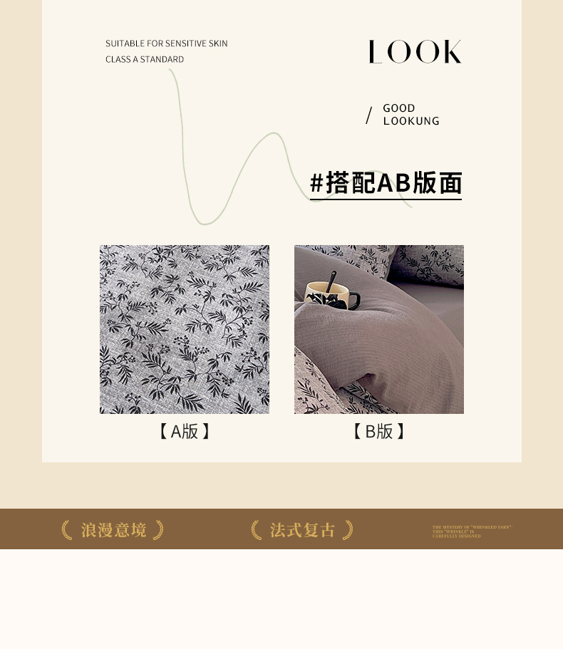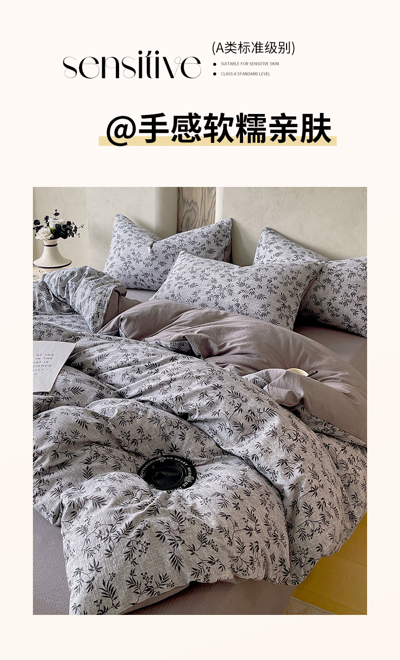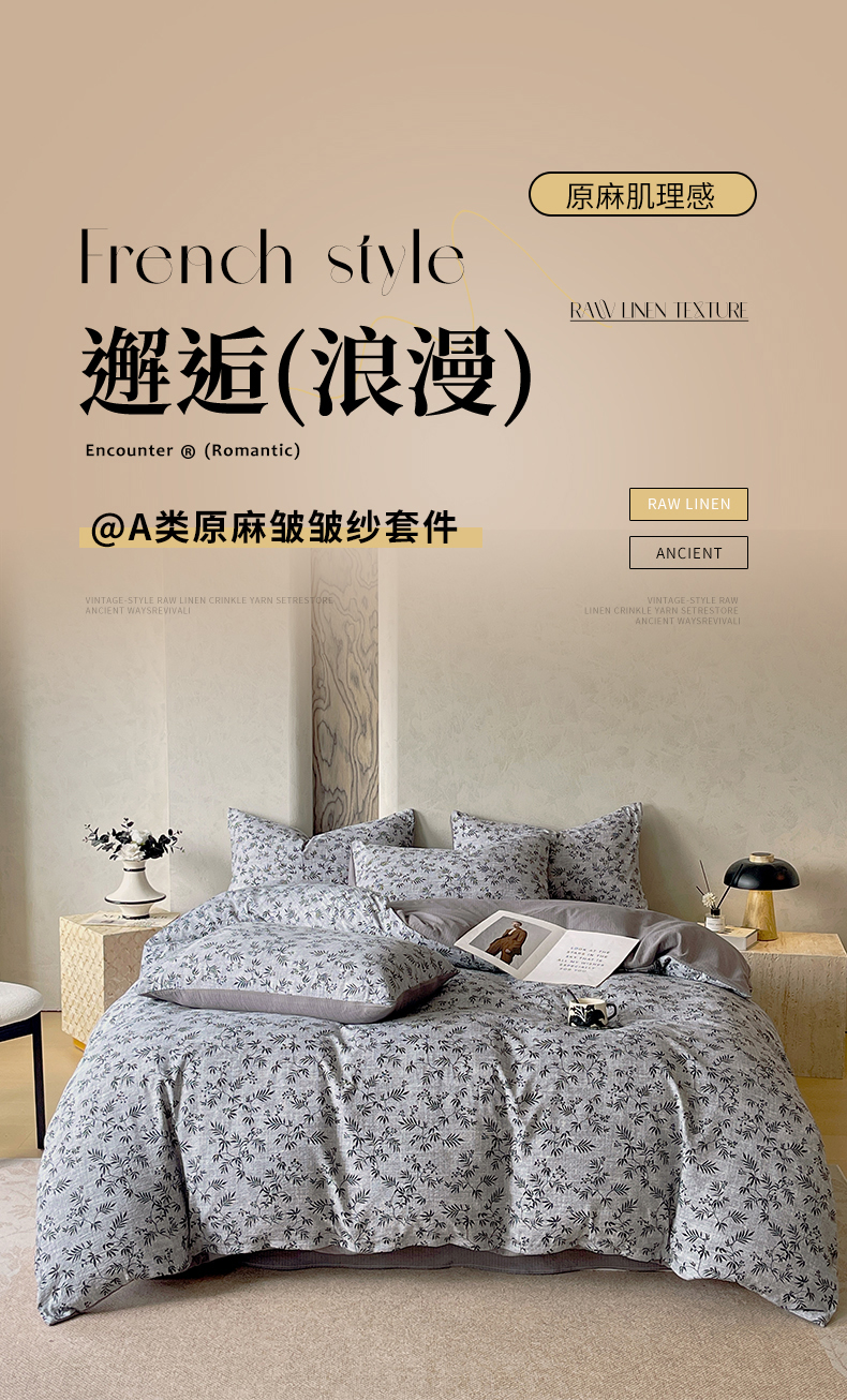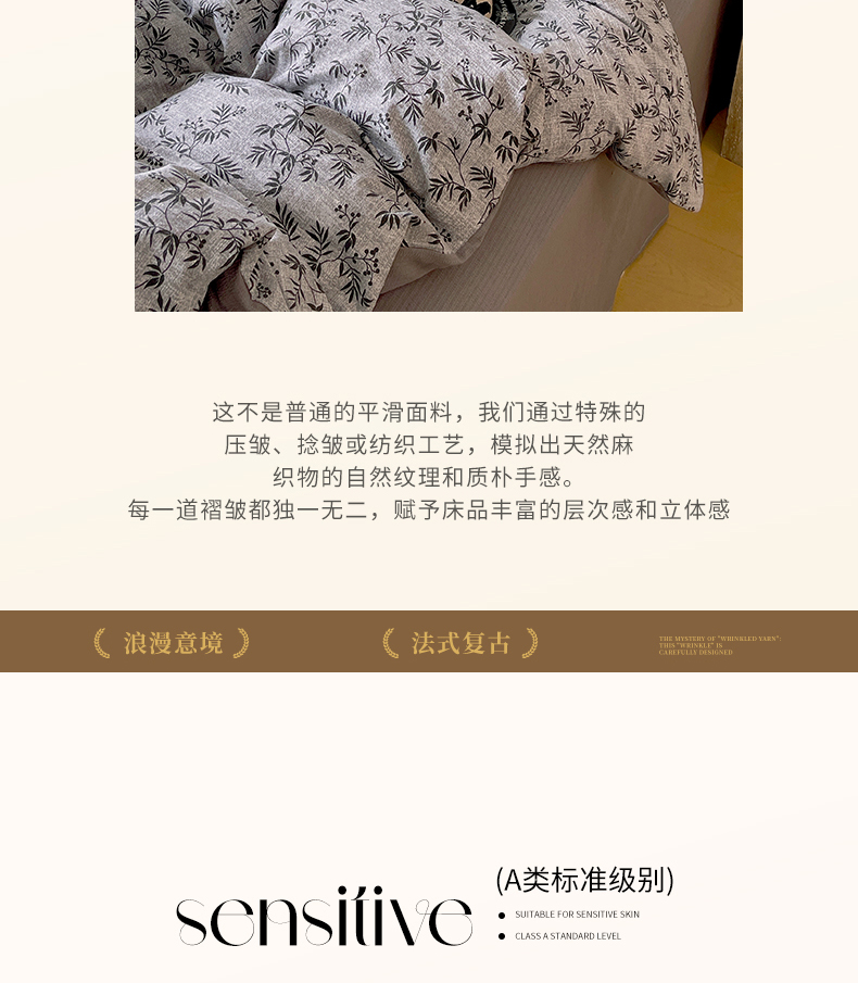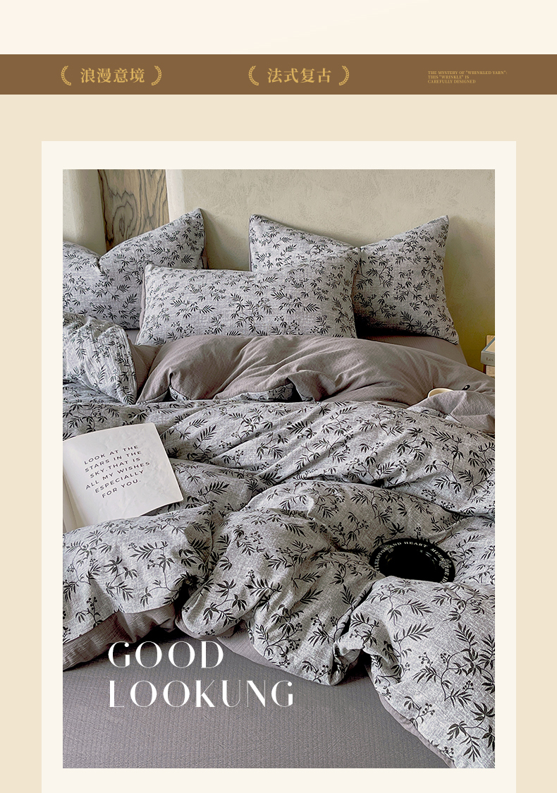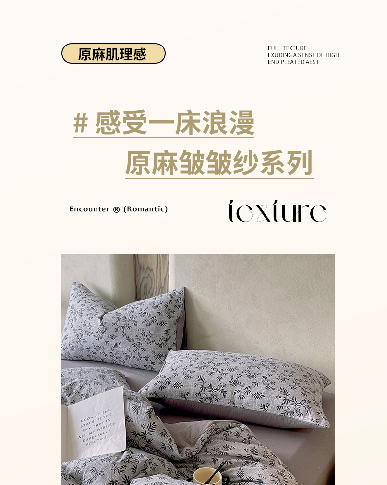 当前位置: 91家纺网 > 商品网购 > 床品套件 > 四件套 > 其它四件套 > 宝士康家纺 2025秋冬新品高克重A类原麻暗合四件套复古加厚双层纱仿亚麻套件 幽叶