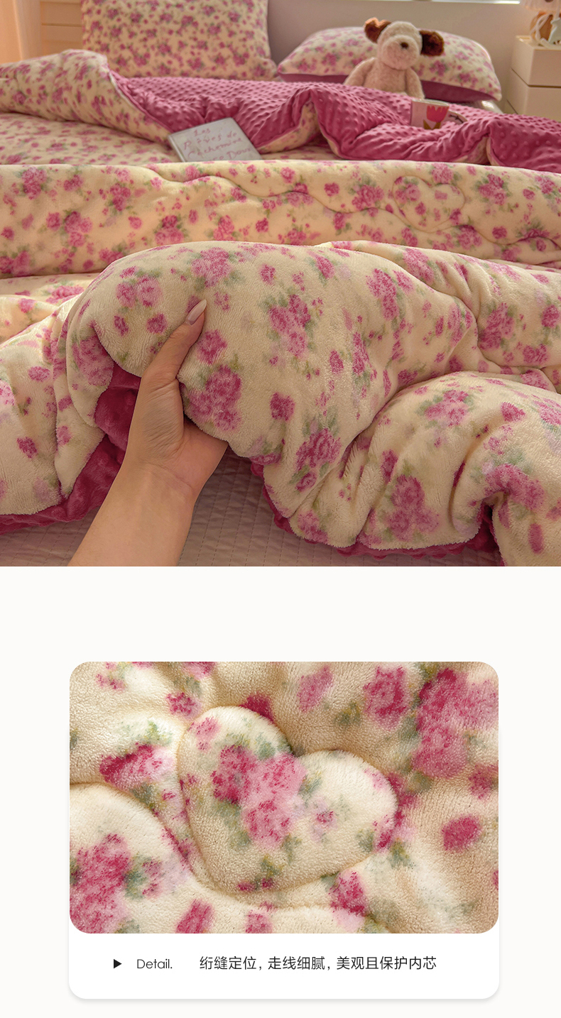 • 91家纺网 家纺一手货源 找家纺 Mata蔓塔家 2025新款高克重印花牛奶绒软绵绵豆豆被春秋冬被被子被芯 疏影(提供买家秀)