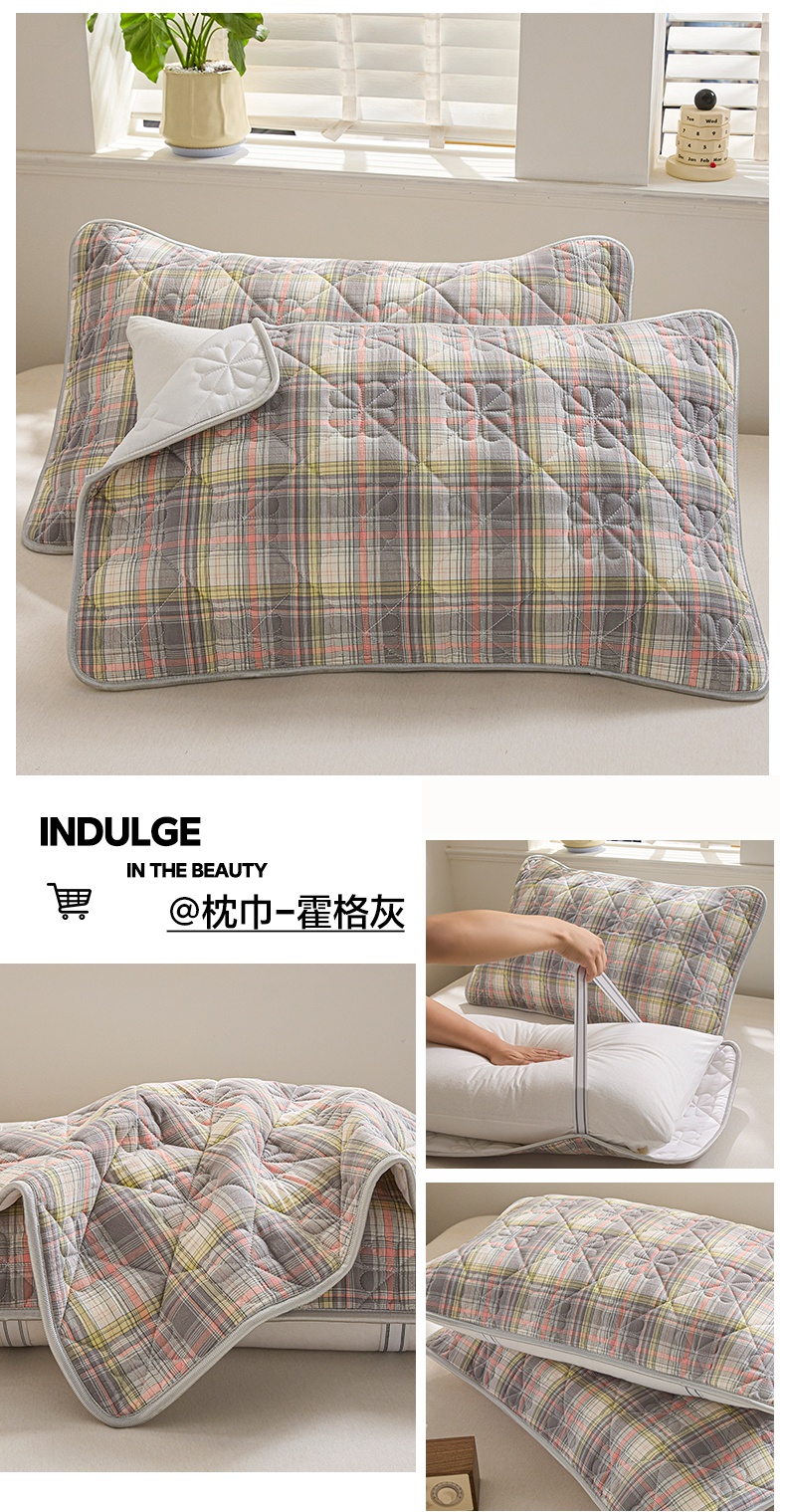 (总)芬晴家纺 2025新款全棉色织棉花枕套,本色,经典格,诺卡,清风-粉,清风-灰,清风-兰,日常