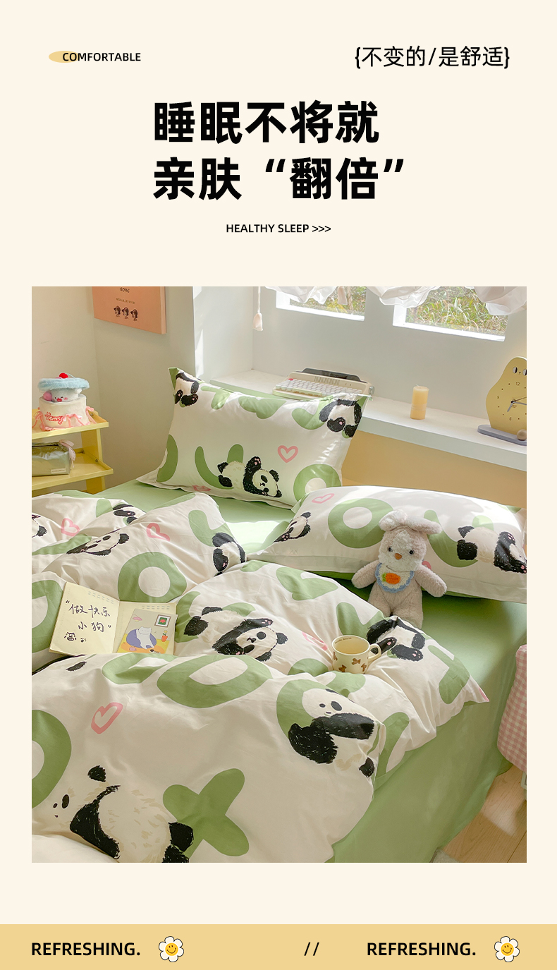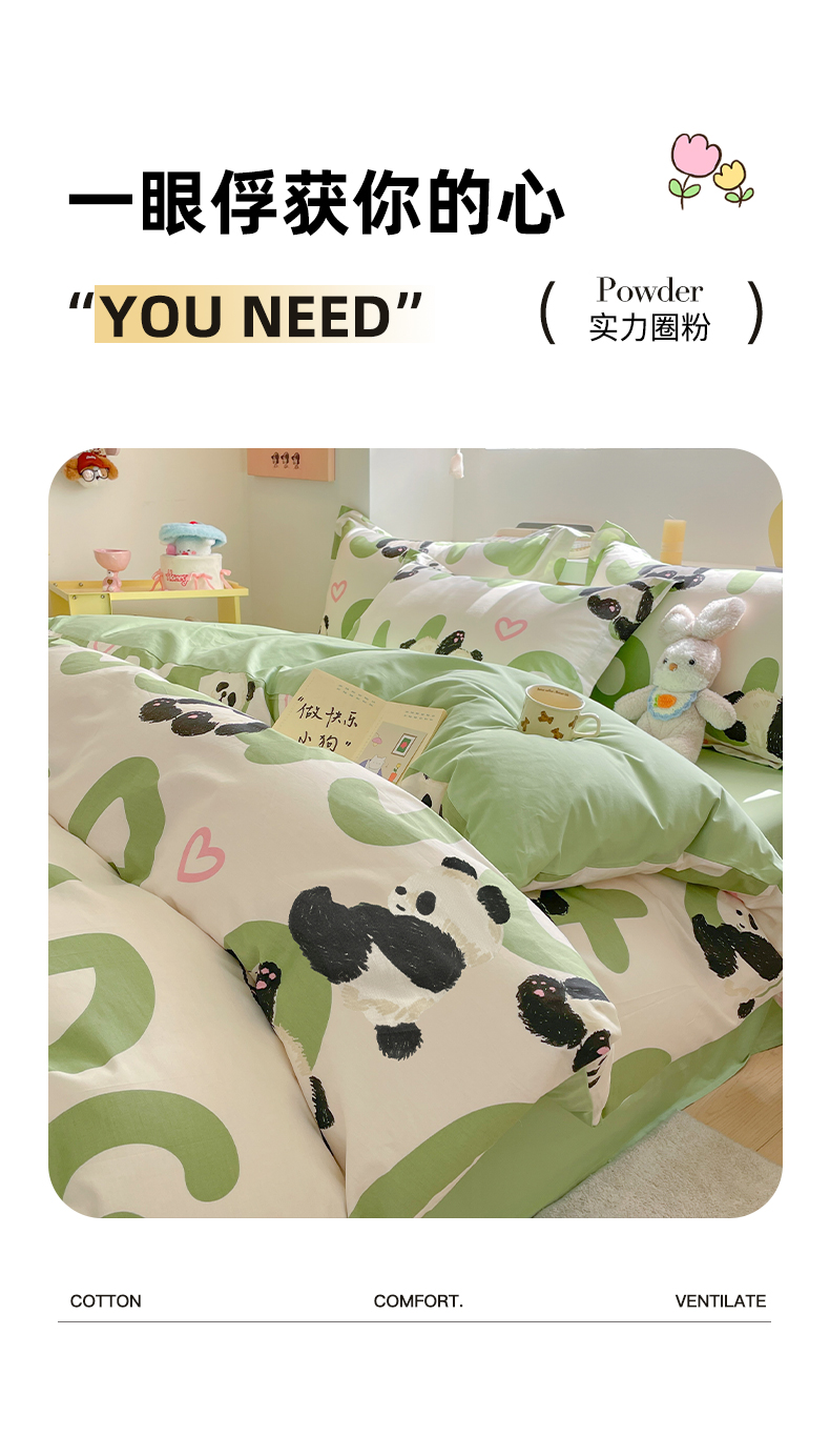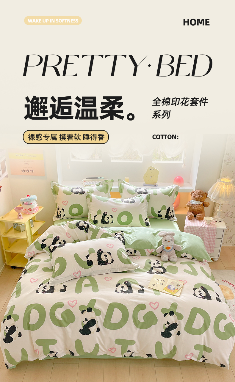 当前位置: 91家纺网 > 商品网购 > 床品套件 > 四件套 > 全棉普通四件套 > 帛美家纺 2025新款纯棉全棉印花四件套 米兜熊猫