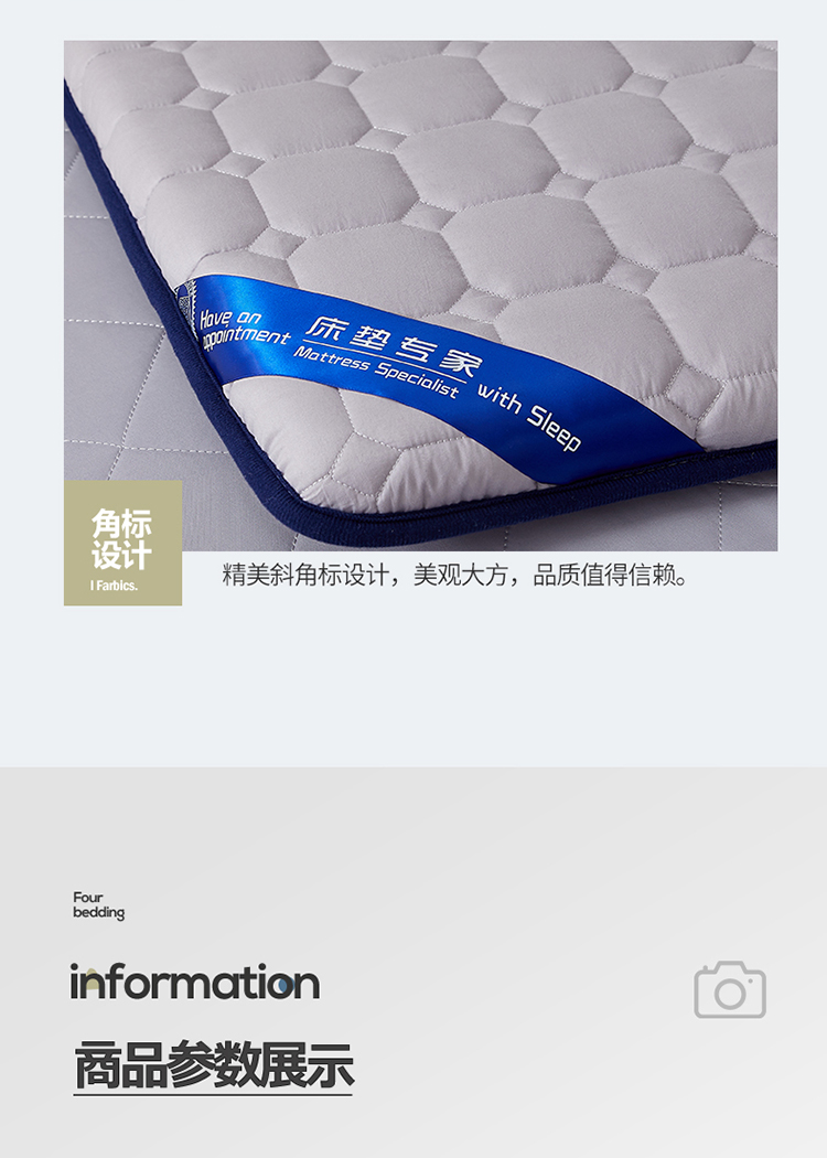 (总)浩宇家纺 2025新款全棉床垫0.9米学生宿舍1.2单人1.5米垫子飘窗垫家用双人1.8米,白色,宝蓝,深灰,银灰