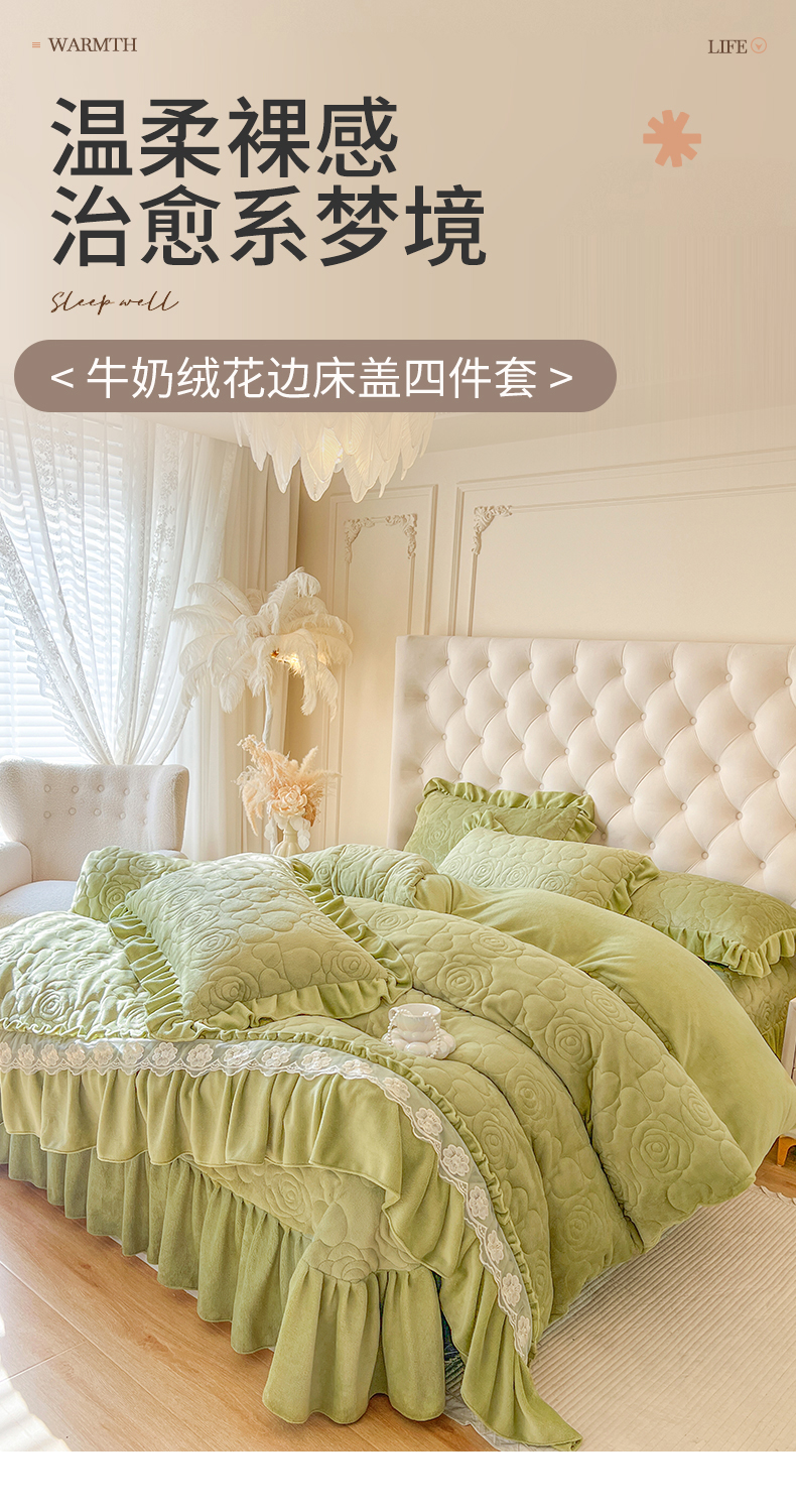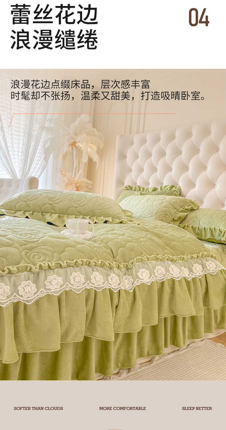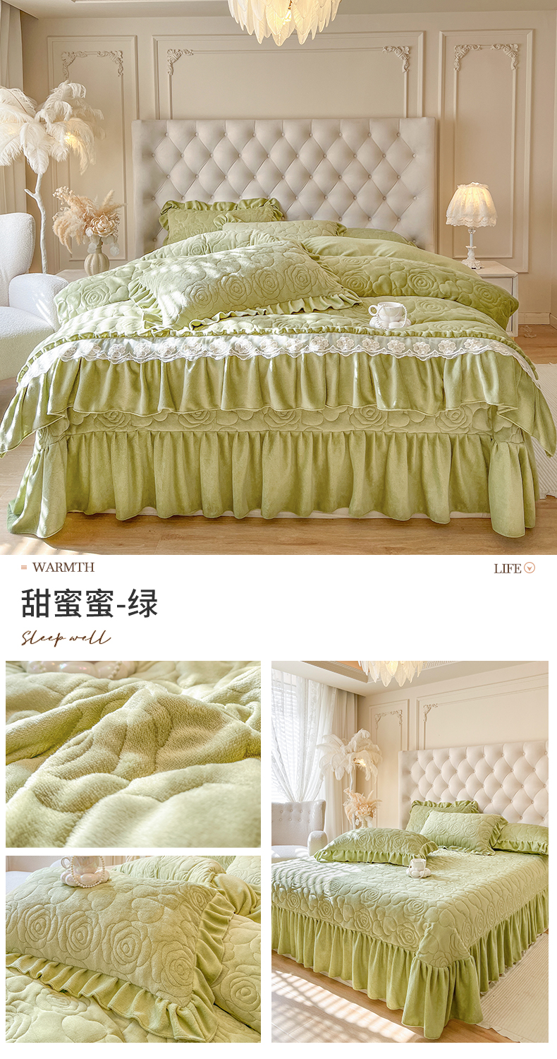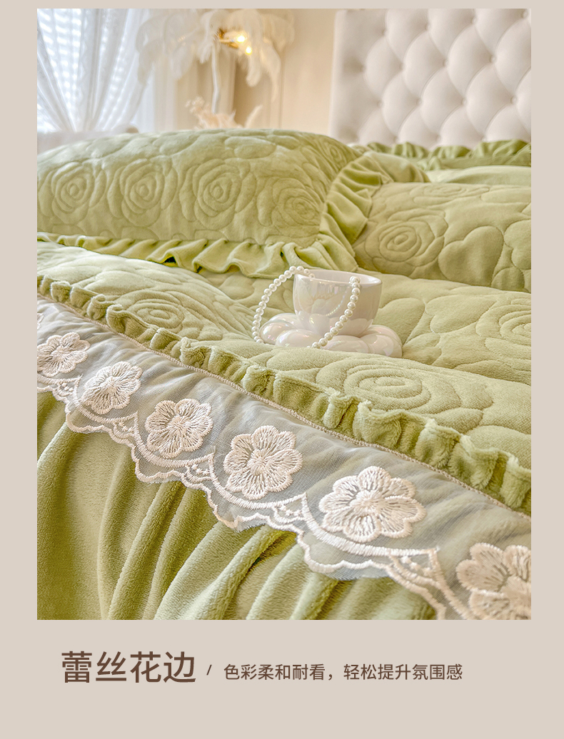 商品名称:网红馆(ck家纺) 2025新款牛奶绒花边床盖单品床盖床盖单件-甜蜜蜜 甜蜜蜜-绿