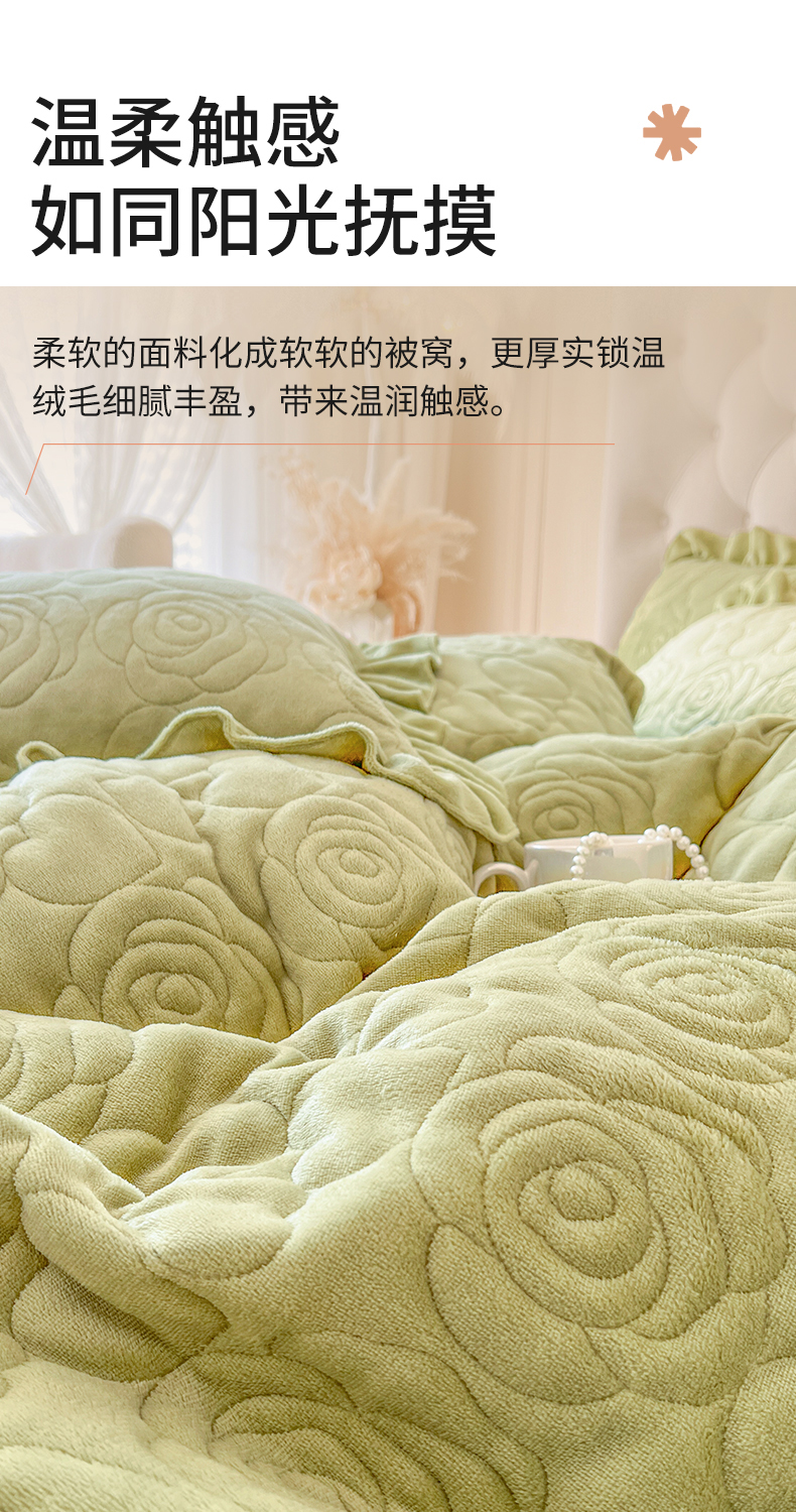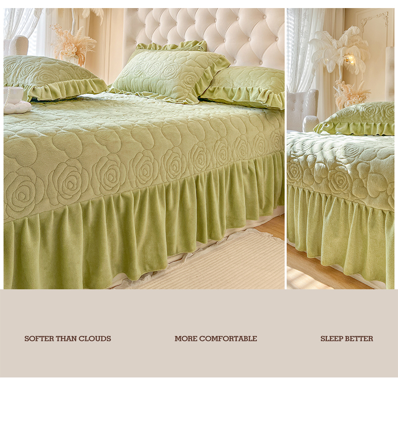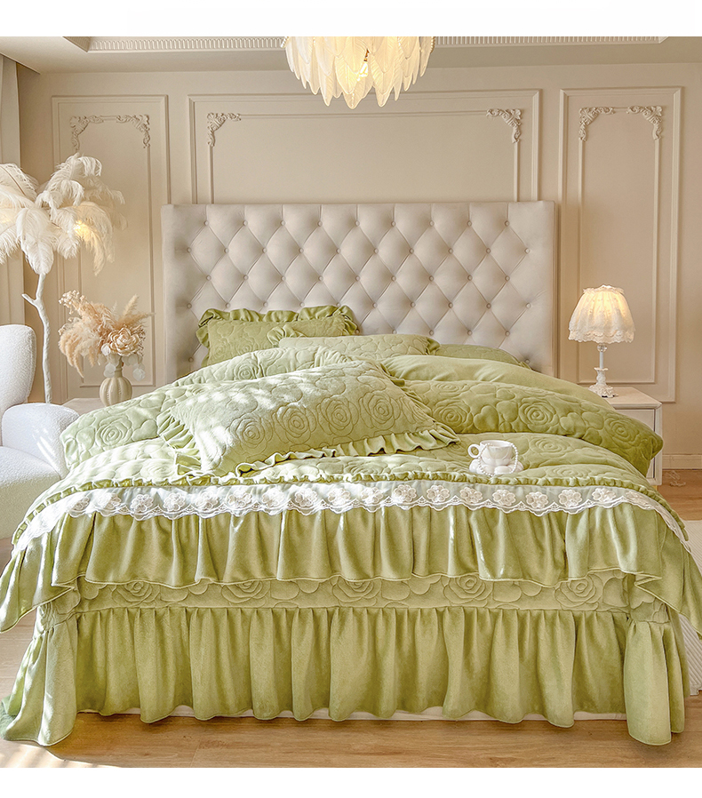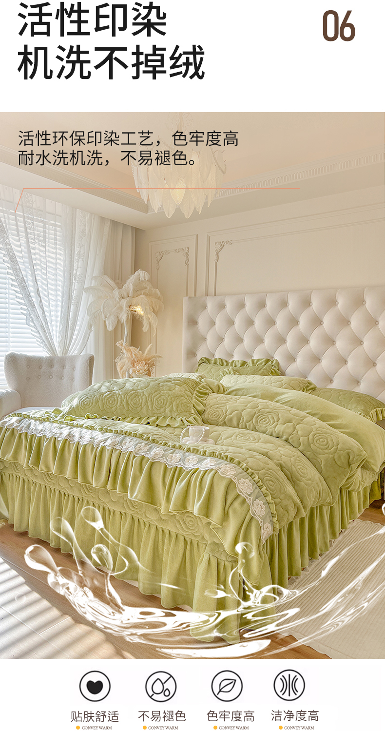 商品名称:网红馆(ck家纺) 2025新款牛奶绒花边床盖单品床盖床盖单件-甜蜜蜜 甜蜜蜜-绿