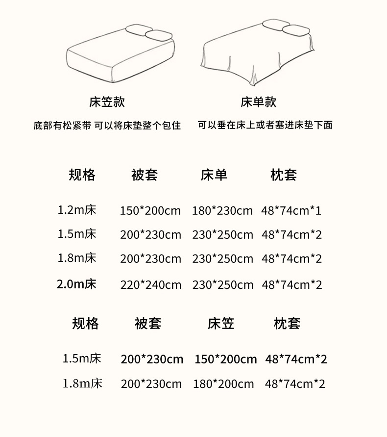 【床单款】2.0四件套-被套220x240 | ¥105.00 |