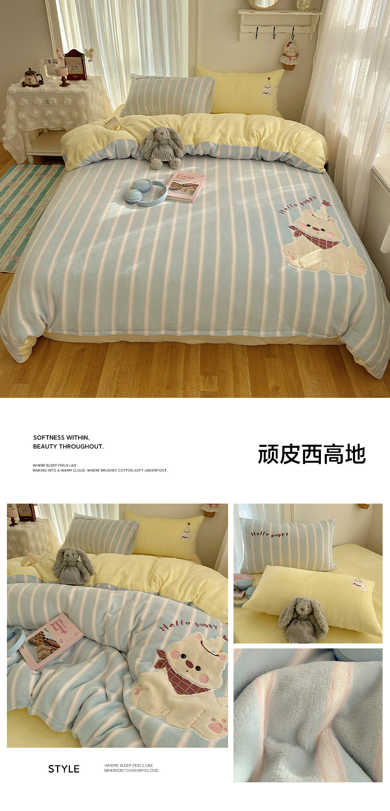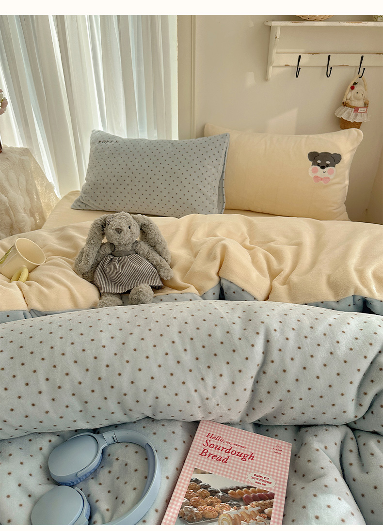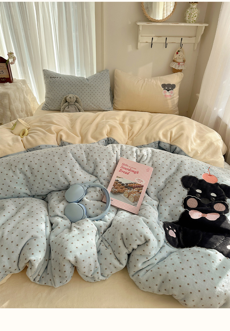 当前位置: 91家纺网 > 商品网购 > 床品套件 > 四件套 > 牛奶绒四件套 > 韩都家居 2025新款卡通贴布绣系列加厚牛奶绒四件套 苹果狗狗