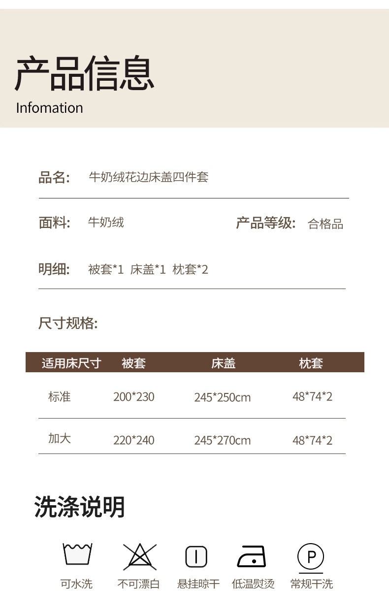 【床盖款】1.8四件套-被套220x240-床盖245x250 | ¥205.00 |