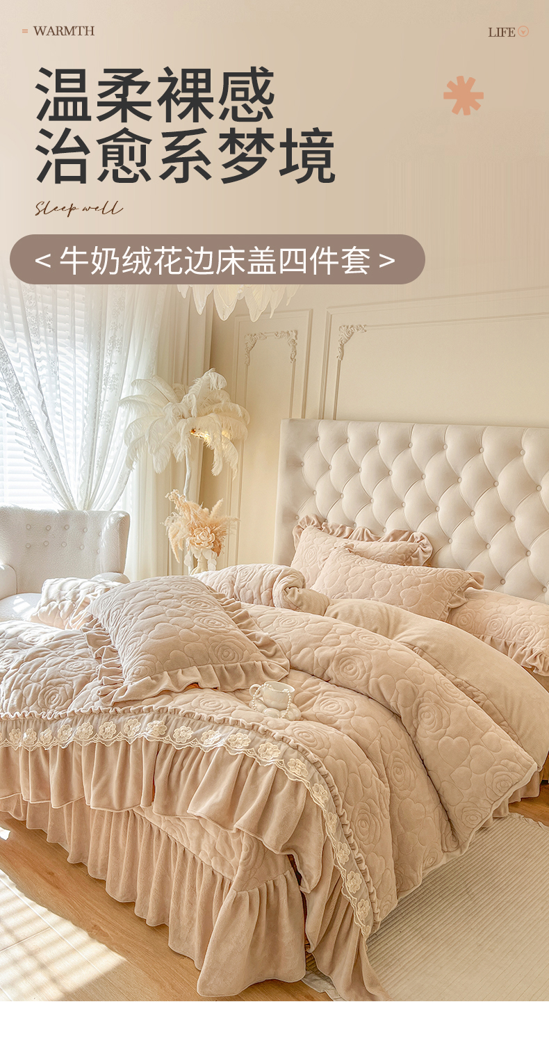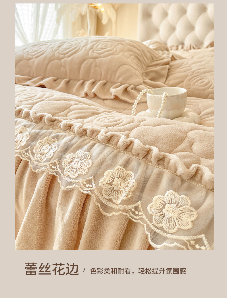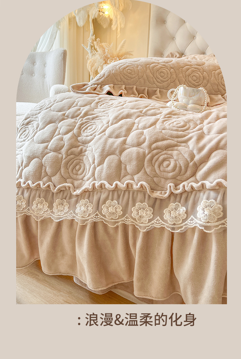 当前位置: 91家纺网 > 商品网购 > 床品套件 > 四件套 > 牛奶绒四件套 > 网红馆(ck家纺) 2025新款牛奶绒花边床盖四件套-甜蜜蜜 甜蜜蜜-咖