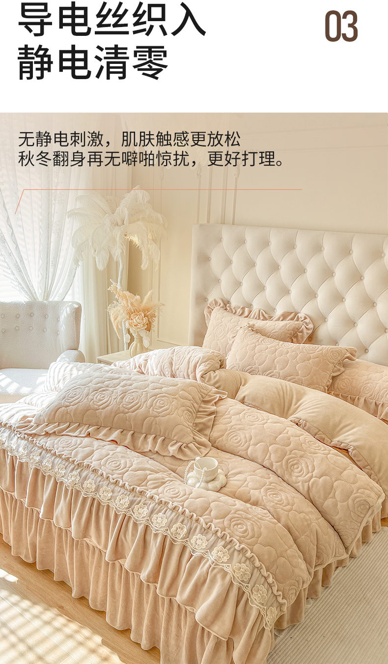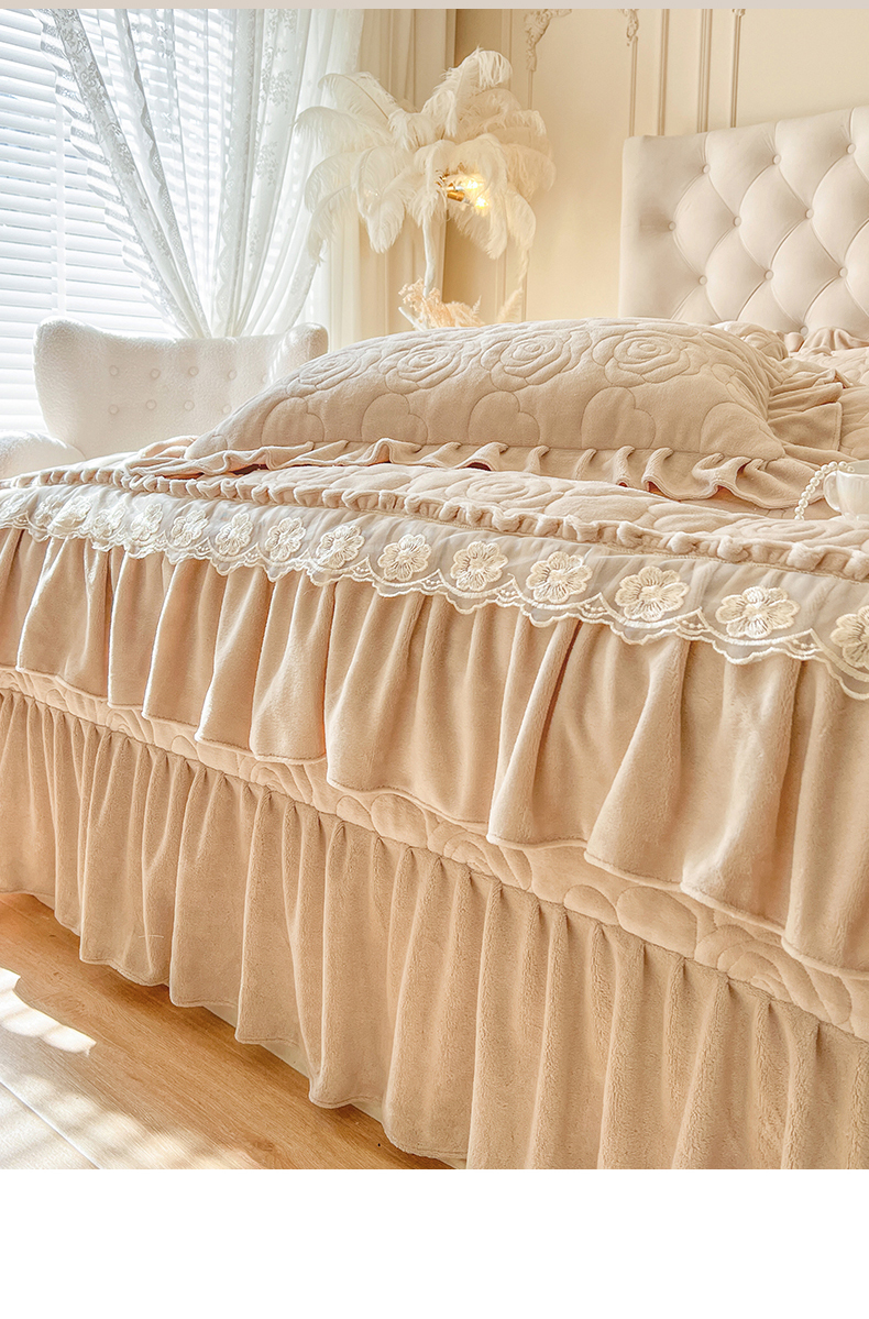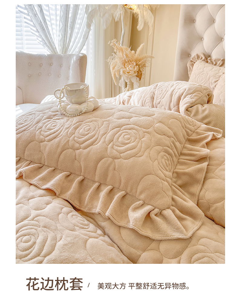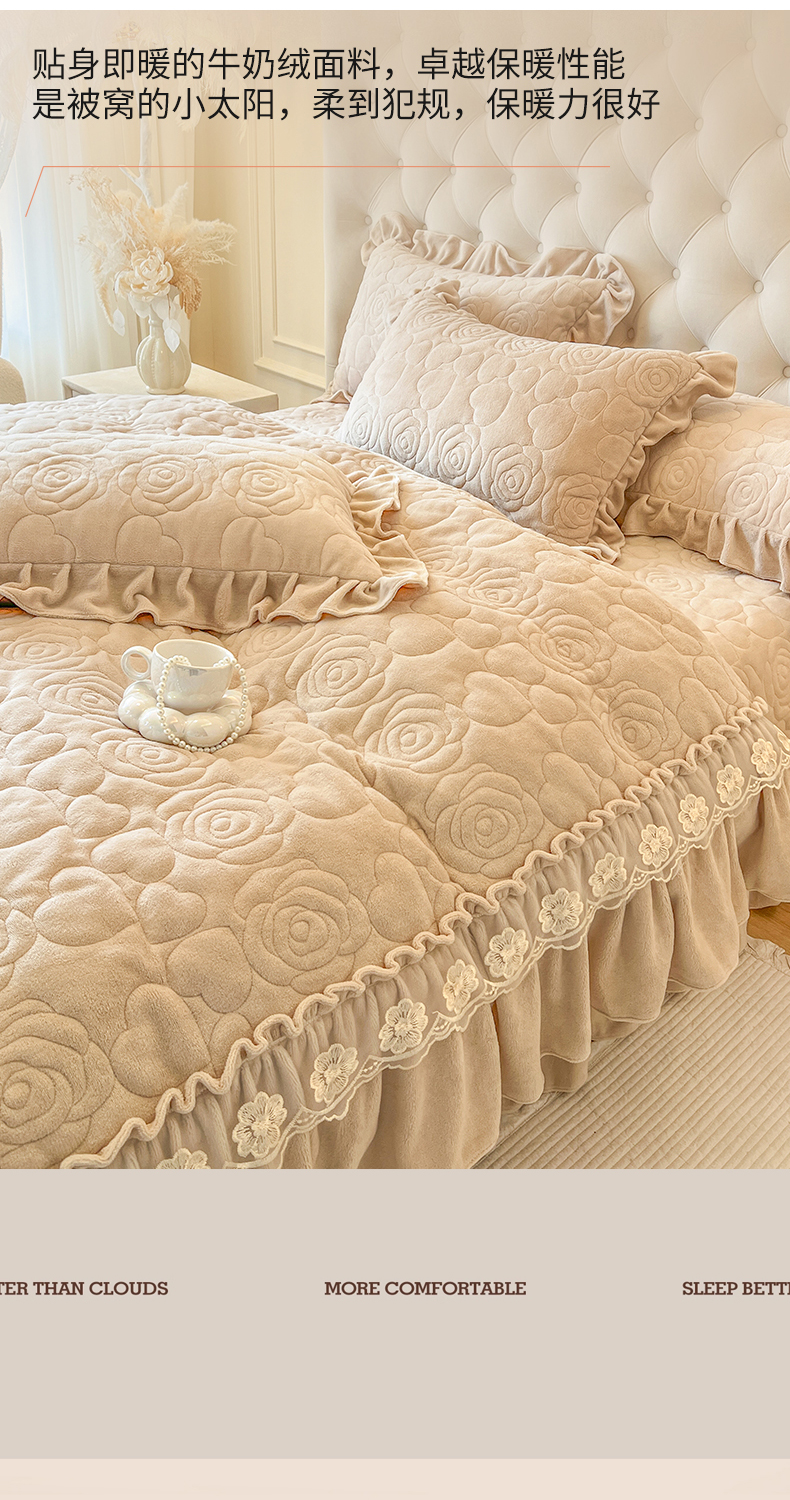 当前位置: 91家纺网 > 商品网购 > 床品套件 > 四件套 > 牛奶绒四件套 > 网红馆(ck家纺) 2025新款牛奶绒花边床盖四件套-甜蜜蜜 甜蜜蜜-咖