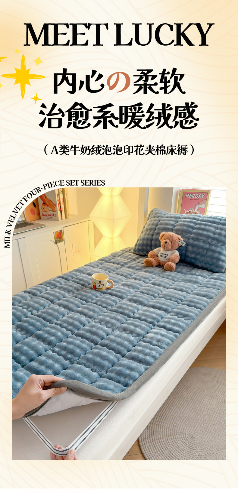 (总)奇丝雅 2025新款A类牛奶绒泡泡绒床褥床垫床盖兔毛绒家用学生宿舍上下铺寝室褥子软垫床护垫夹棉(大床),星星猫咪,爱心咖,繁星,幻影灰,暖绒蓝,趴趴狗,清新绿,柔和蓝,樱桃猫咪,月亮湾