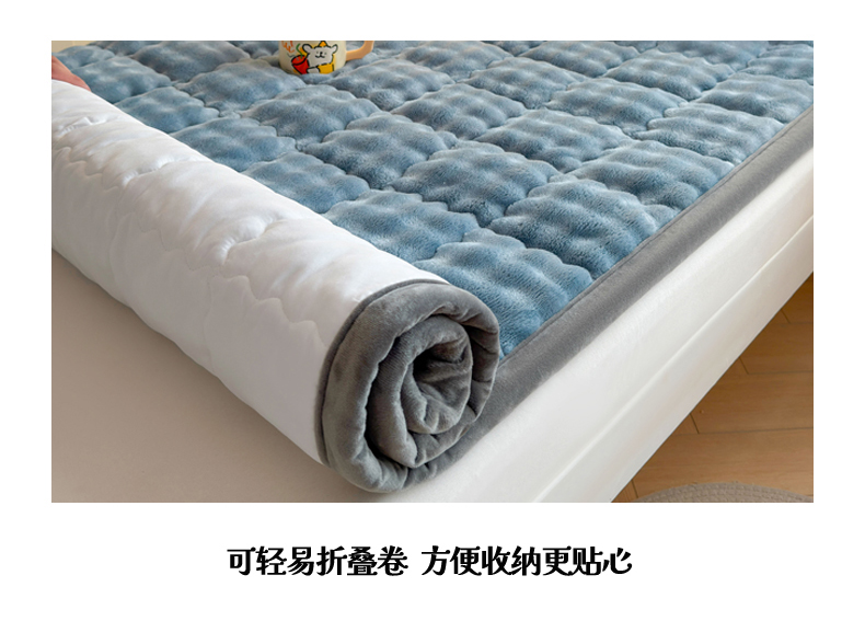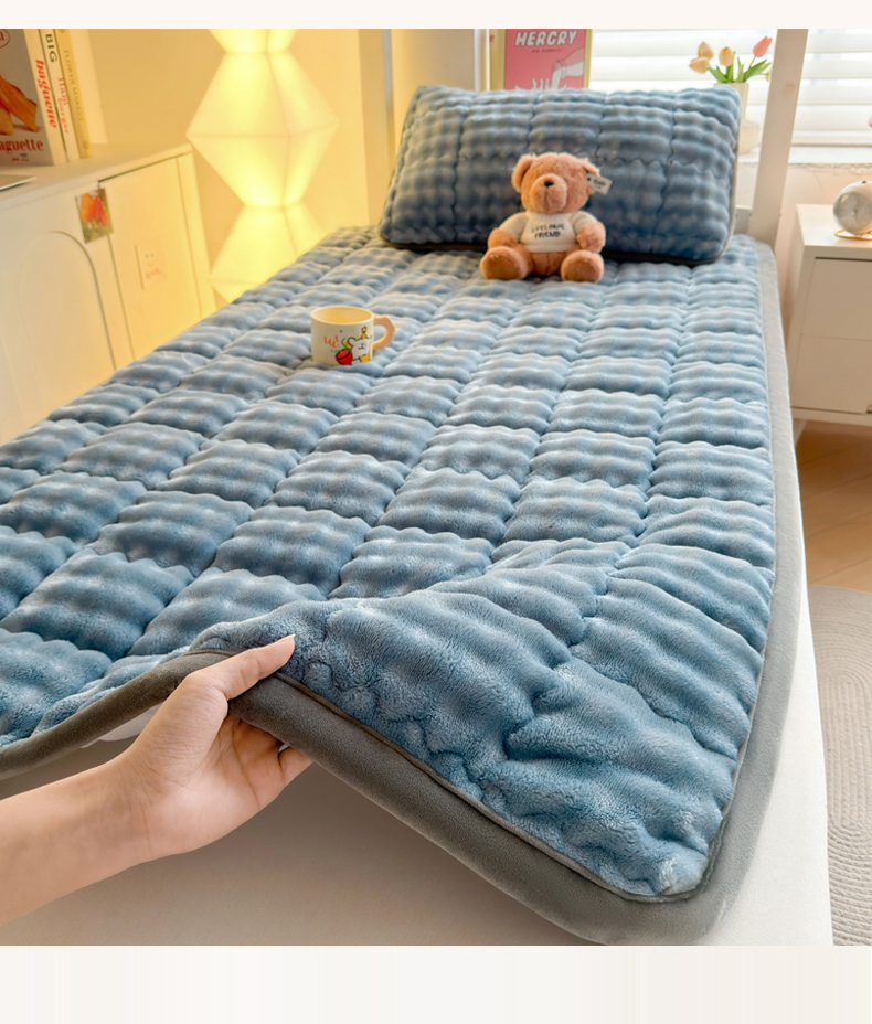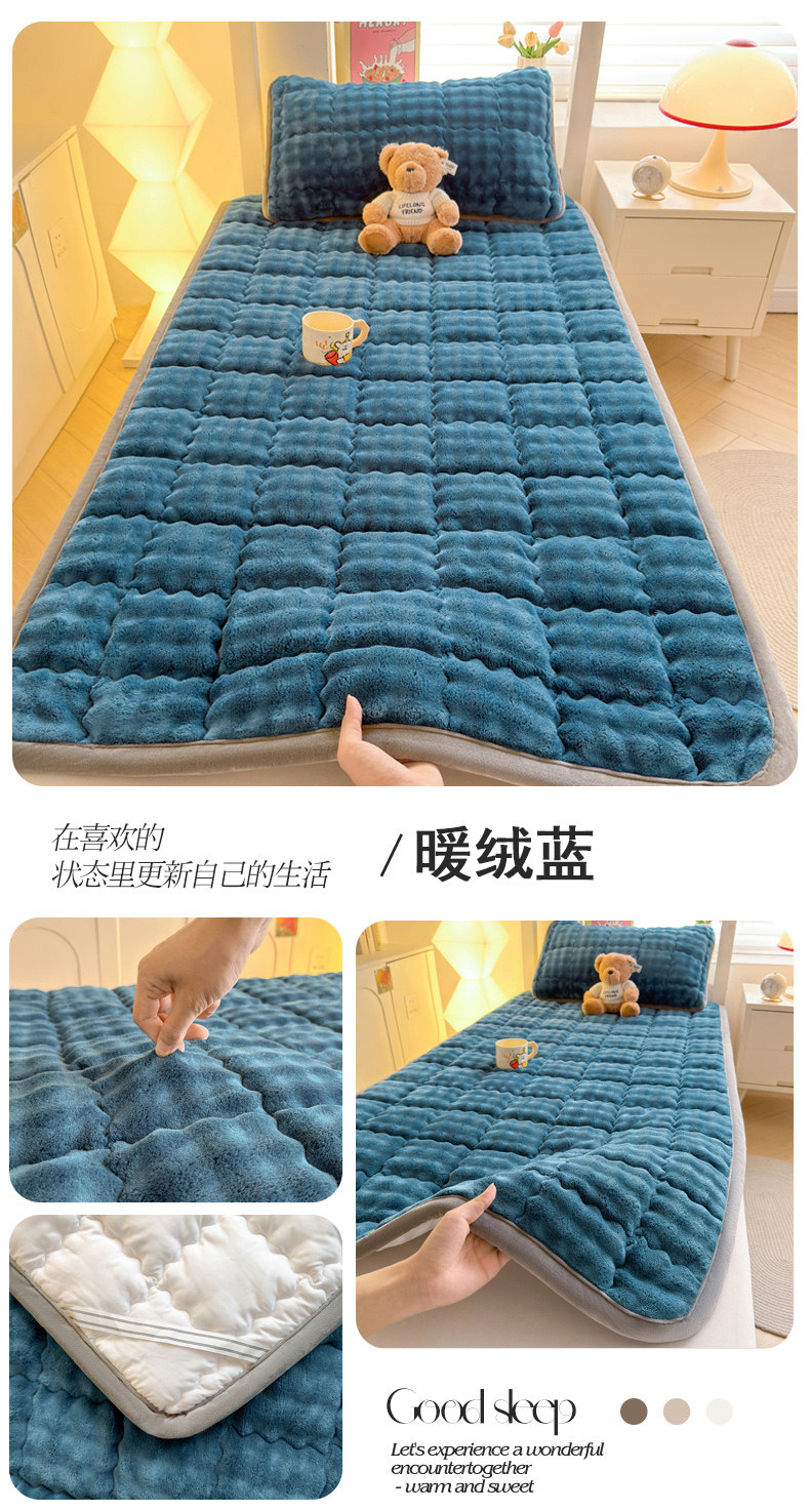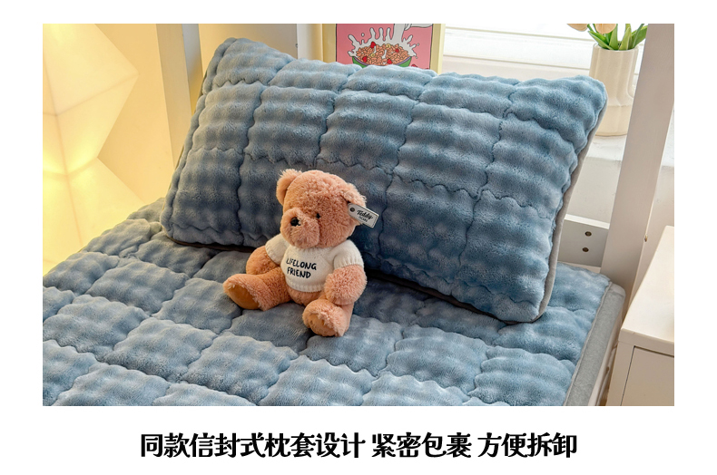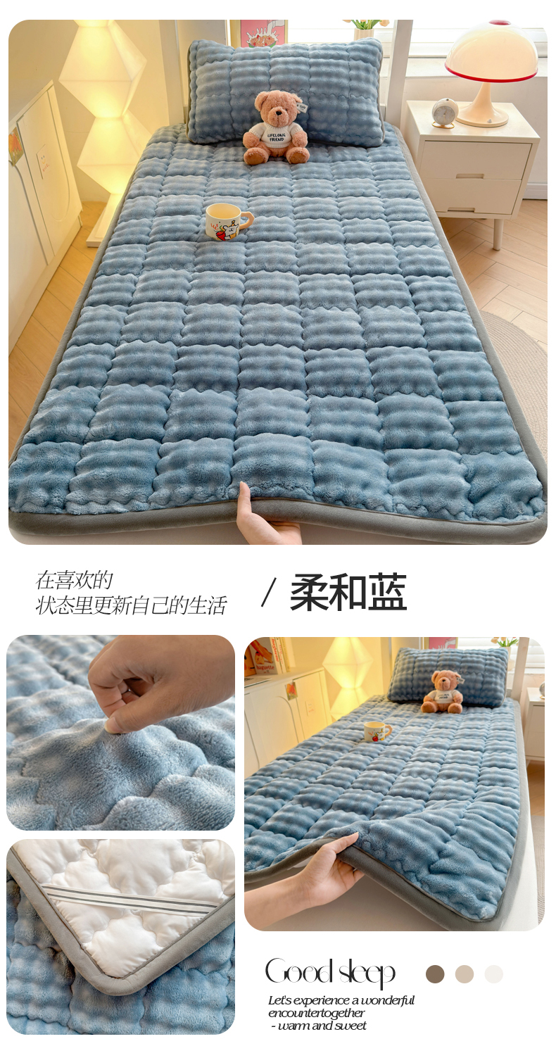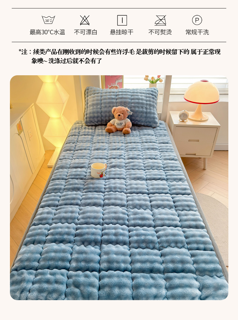 商品名称:奇丝雅 2025新款A类牛奶绒泡泡绒床褥床垫床盖兔毛绒家用学生宿舍上下铺寝室褥子软垫床护垫夹棉(学生床) 柔和蓝