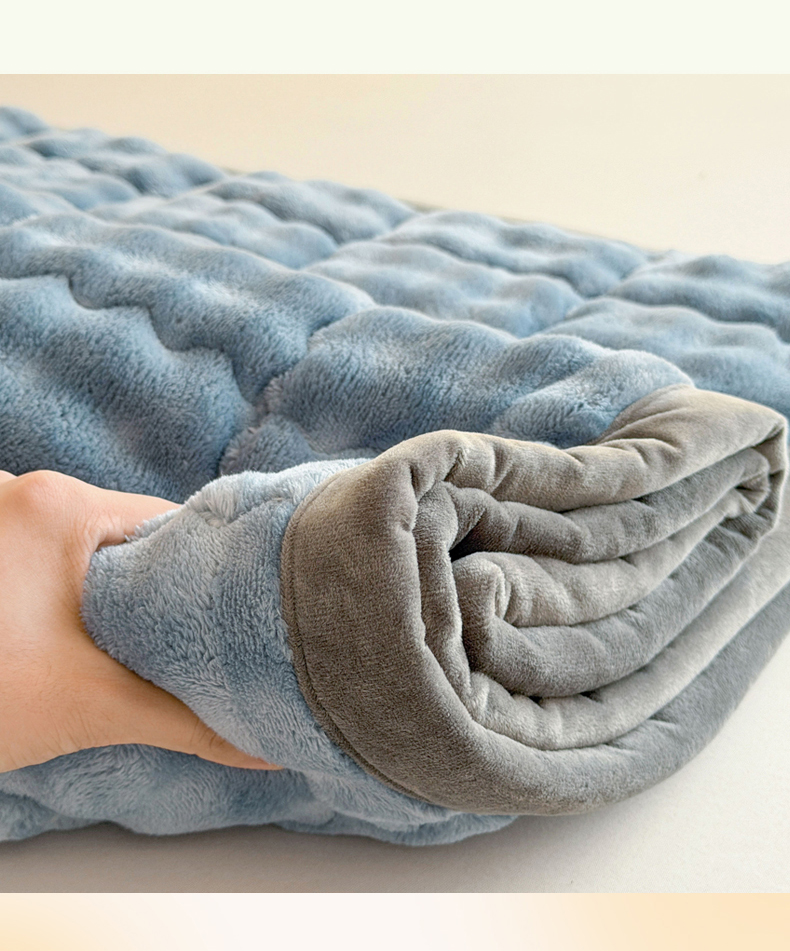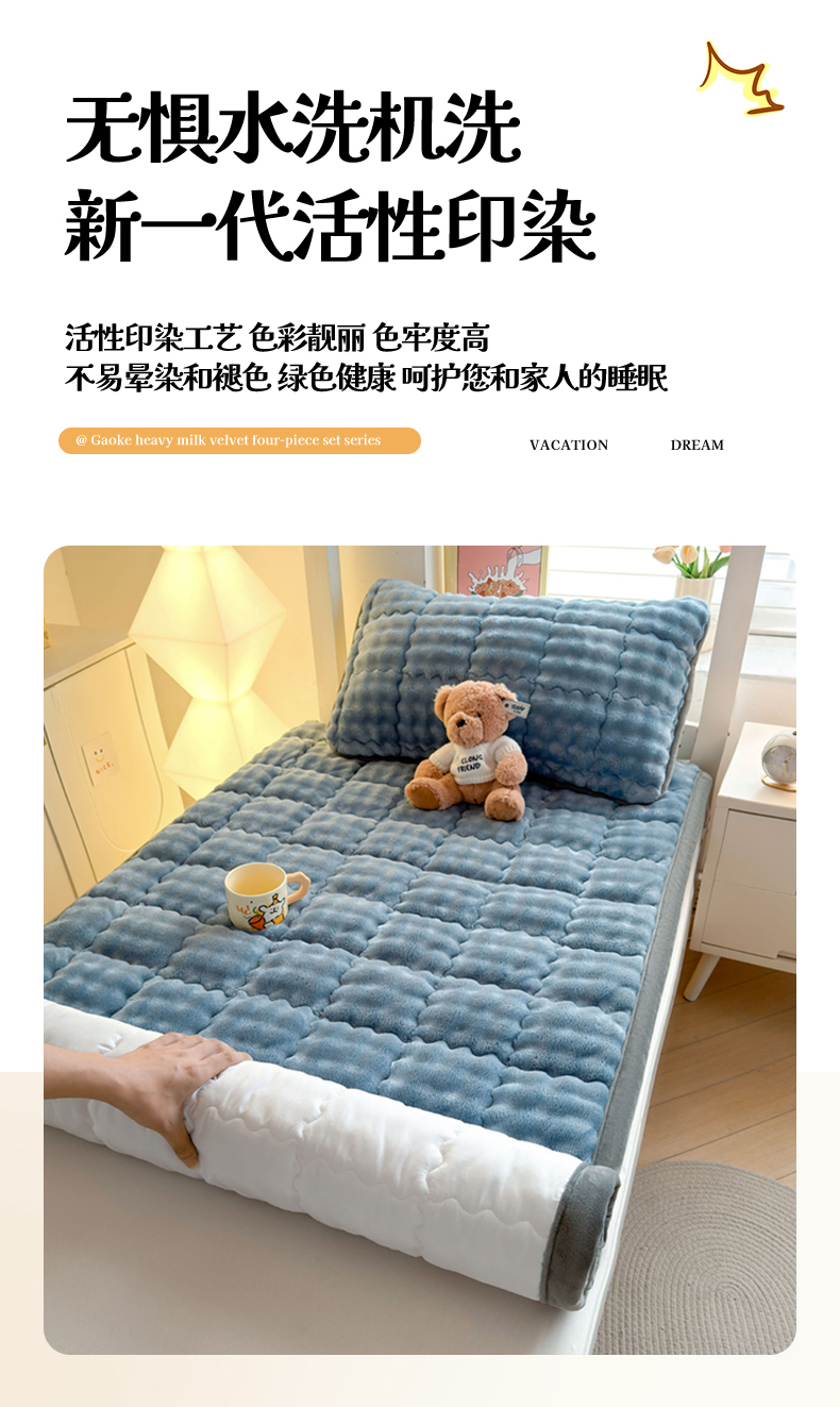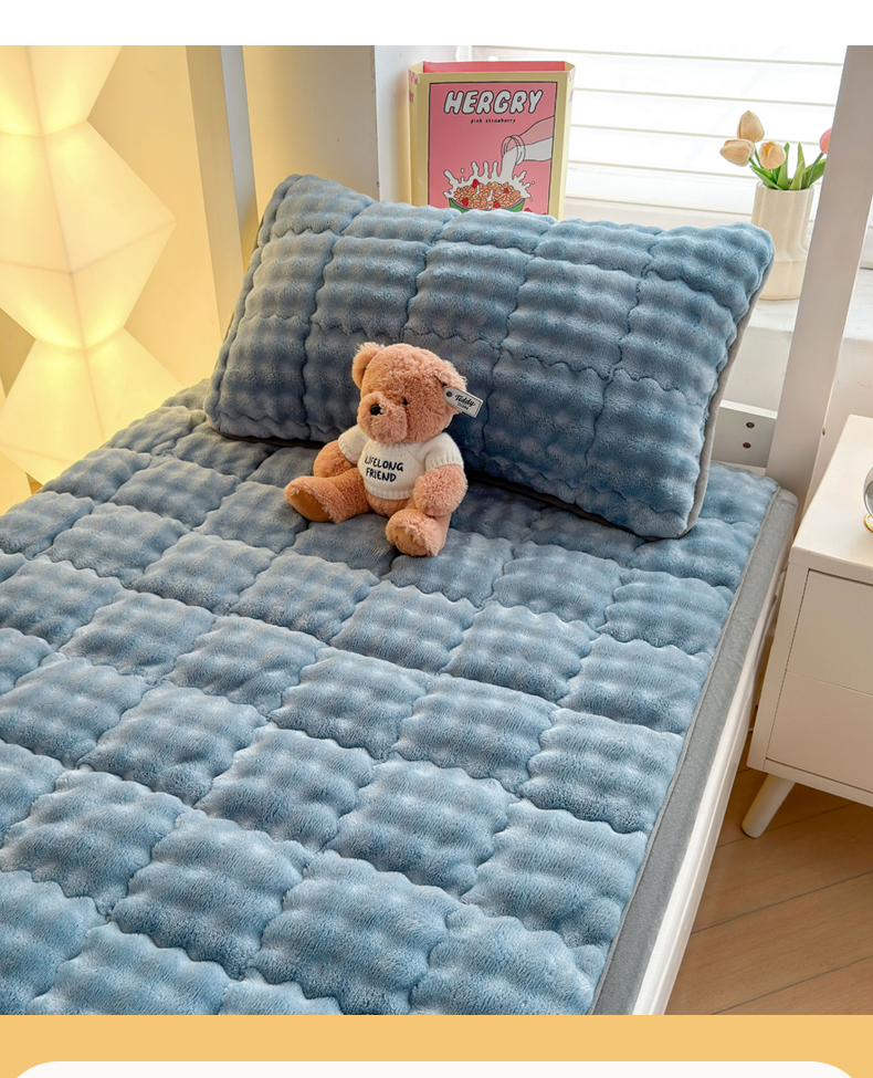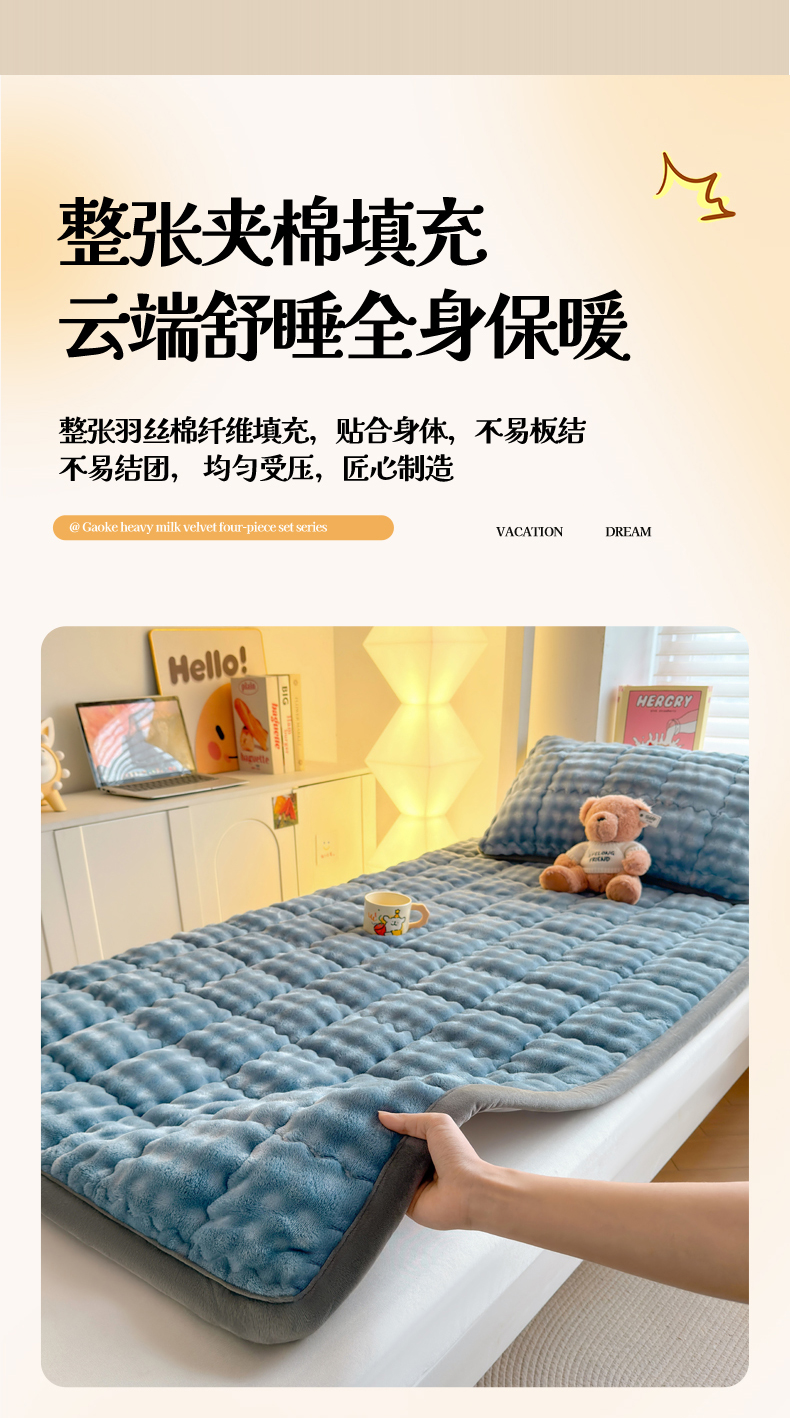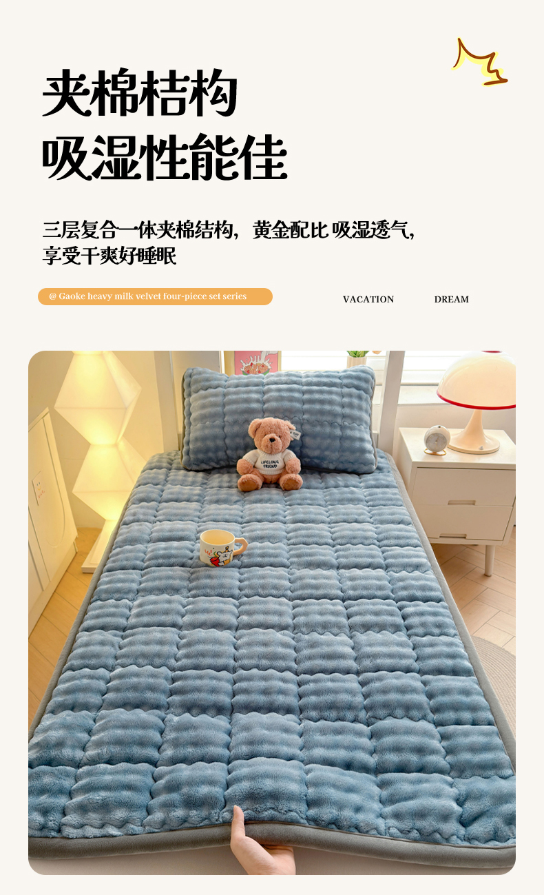 商品名称:奇丝雅 2025新款A类牛奶绒泡泡绒床褥床垫床盖兔毛绒家用学生宿舍上下铺寝室褥子软垫床护垫夹棉(学生床) 柔和蓝