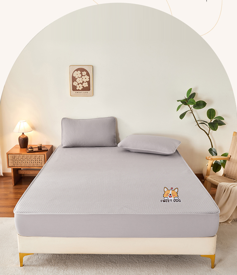 (总)永旺家纺 2025新款纯色防水床笠-柯基系列,灰柯基,黄柯基,绿柯基,蓝柯基,粉柯基