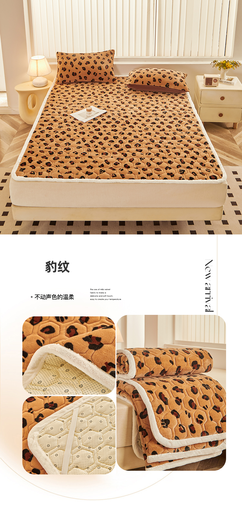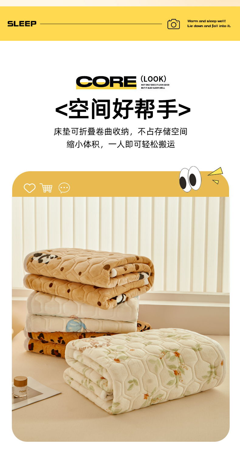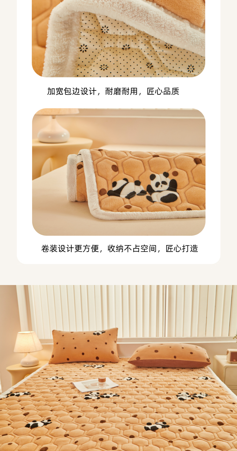 (总)永旺家纺 2025新款保暖牛奶牛奶绒床垫床褥,豹纹,蝶影,可爱熊猫