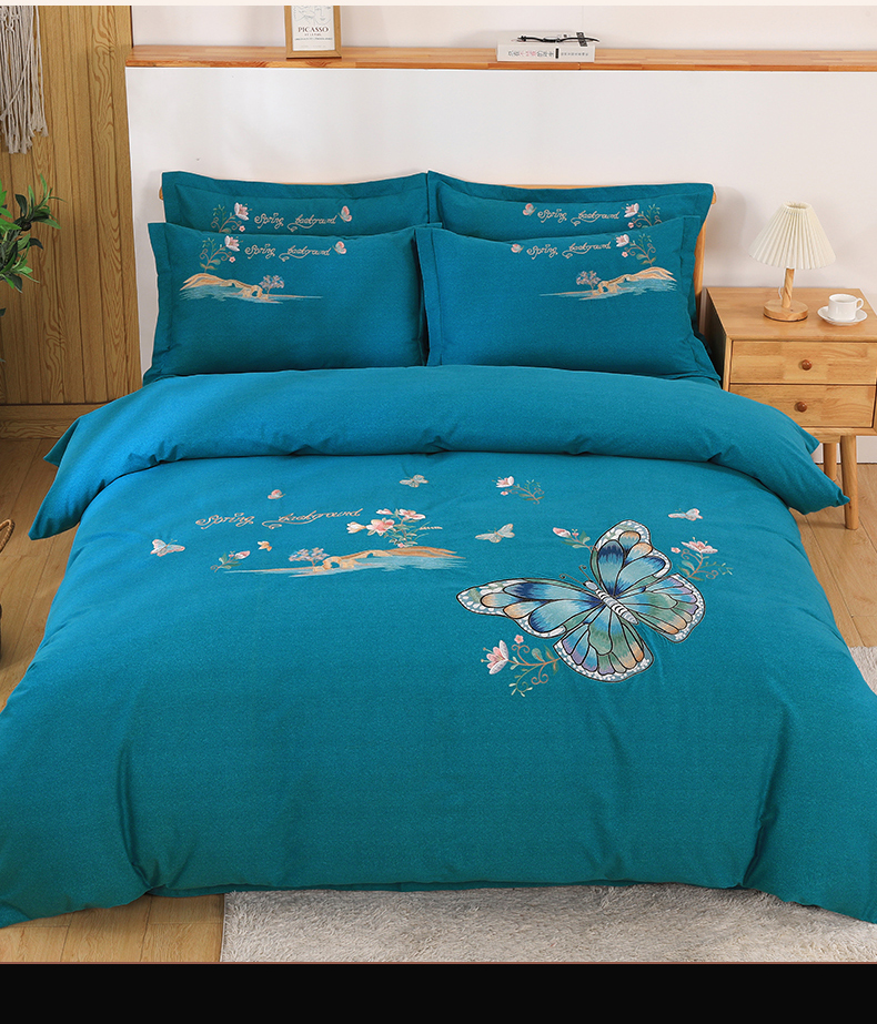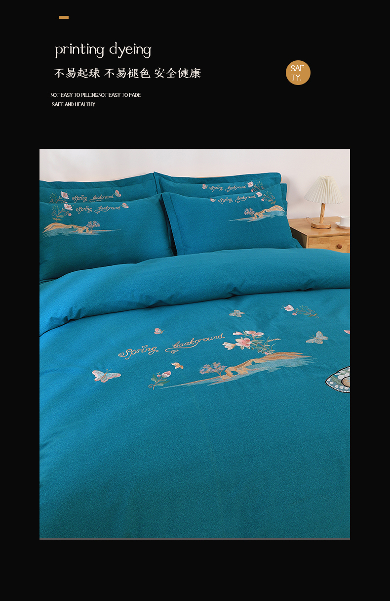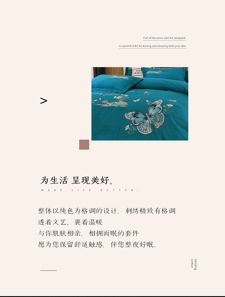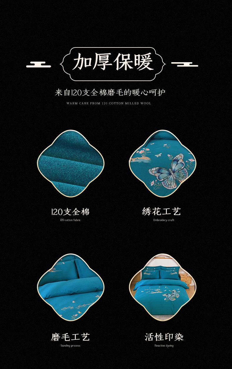 浩情国际婚庆供货中心 2026新款秋冬60S高端全棉刺绣磨毛系列 翩翩蝶影-宝石蓝