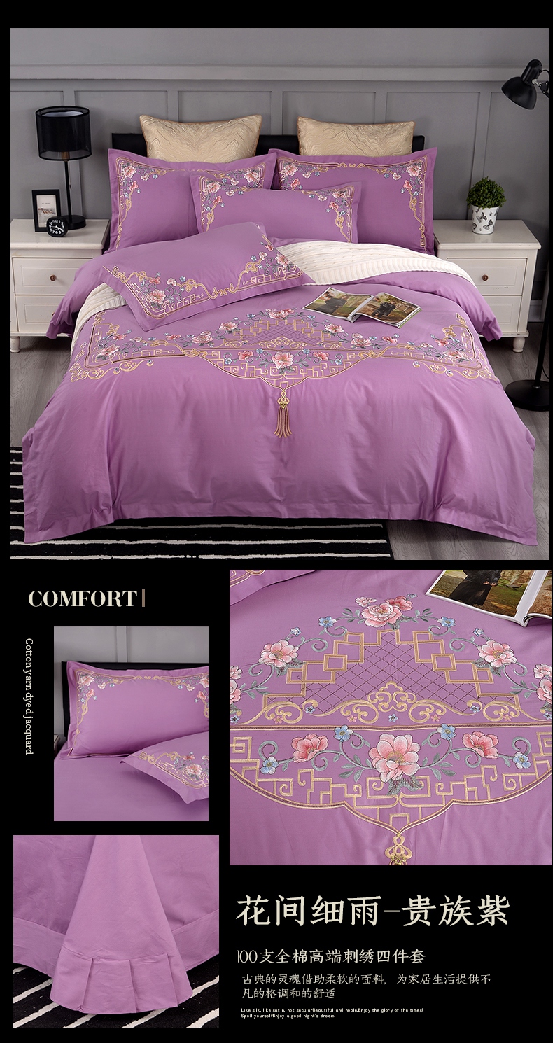 商品名称:浩情国际婚庆供货中心 2026新款新中式风100支全棉高端刺绣四件套 香山密影-贵族紫