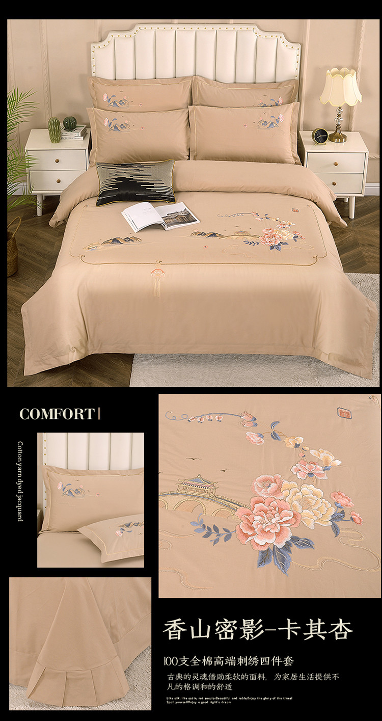 (总)浩情国际2026新款100S长绒棉高端刺绣四件套,花之曼-大红,花之曼-豆沙,花之曼-粉玉,花之曼-灰豆绿,花之曼-孔雀绿,花之曼-兰灰,花之曼-驼色,花之曼-紫豆沙
