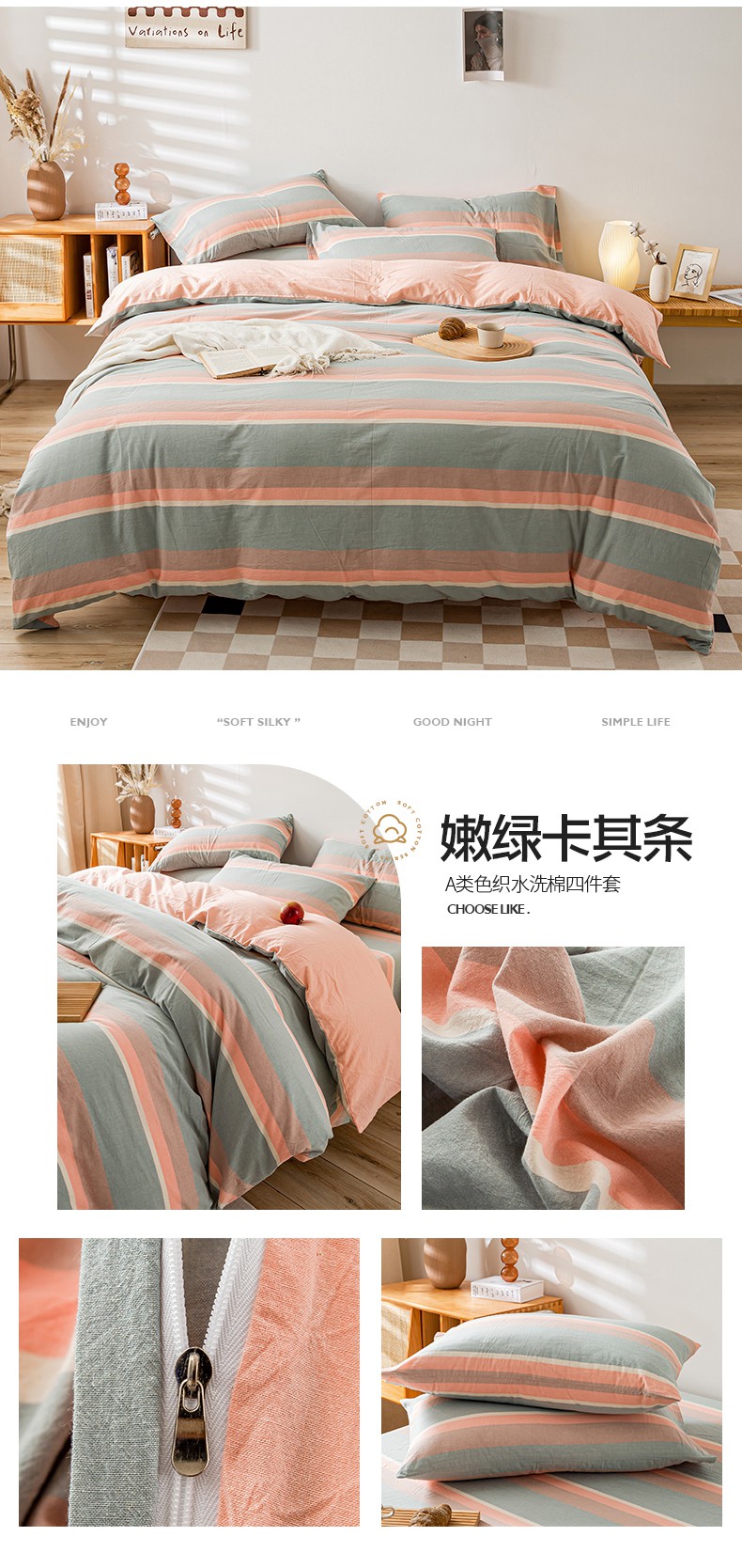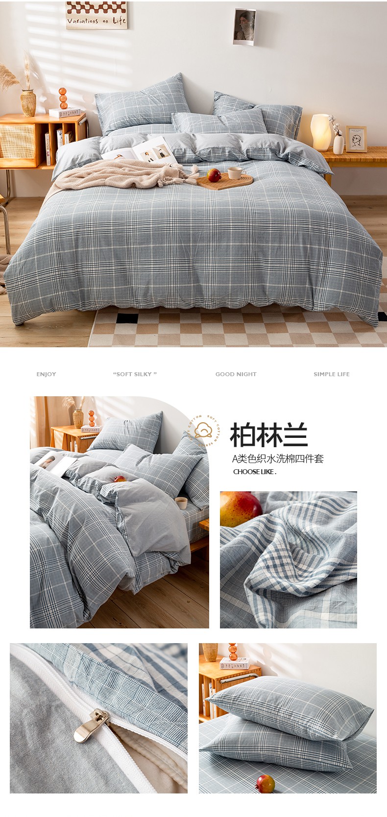 当前位置: 91家纺网 > 商品网购 > 床品套件 > 四件套 > 水洗棉四件套 > 咏绒家纺工厂店 2025新款A类色织水洗棉四件套 绿小格