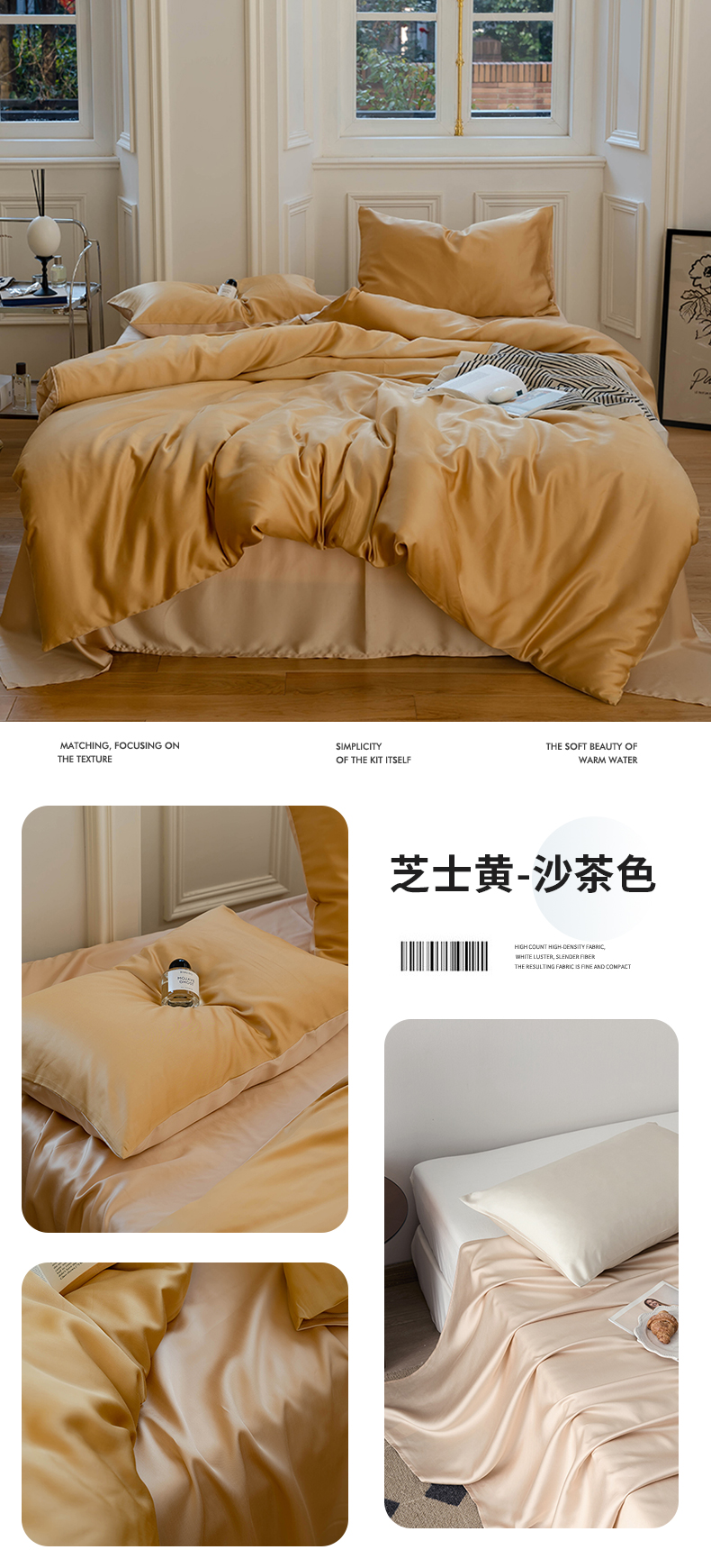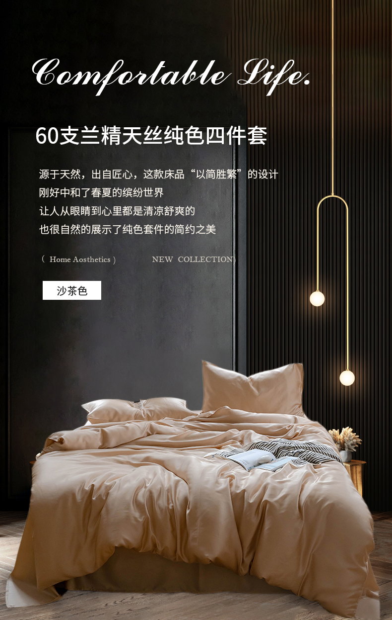 商品名称:浩情国际婚庆供货中心 2026新款60支奥地利兰精天丝纯色双拼系列四件套 沙茶色