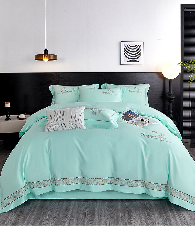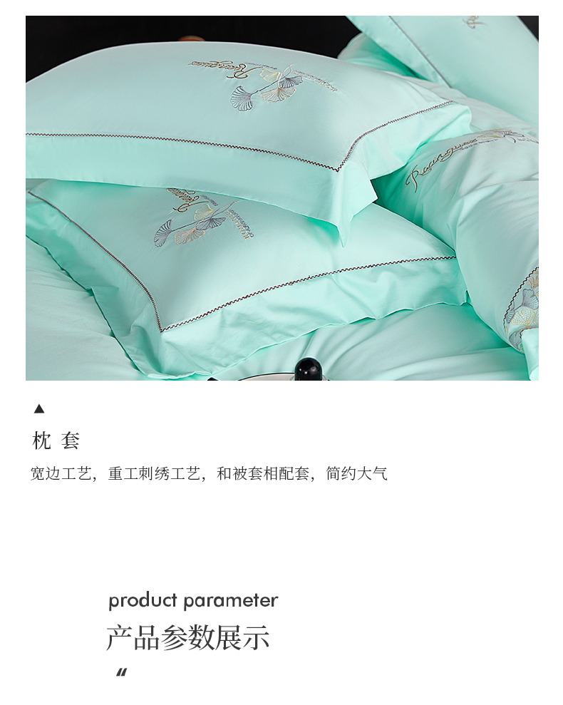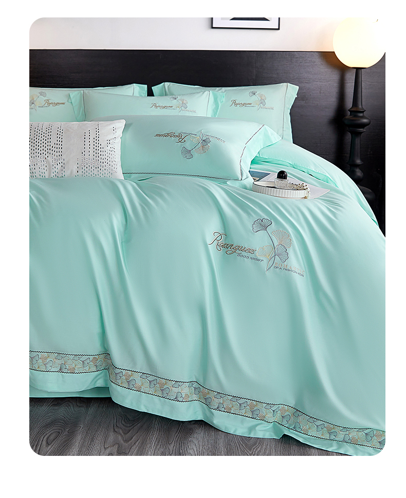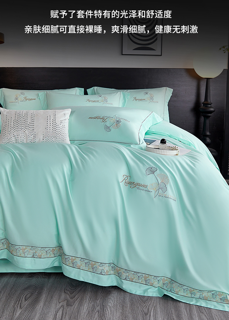 商品名称:浩情国际婚庆供货中心 2026新款160S春夏天丝棉高端刺绣系列四件套 银之杏-湖水蓝