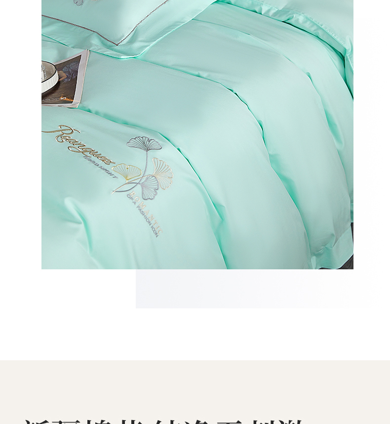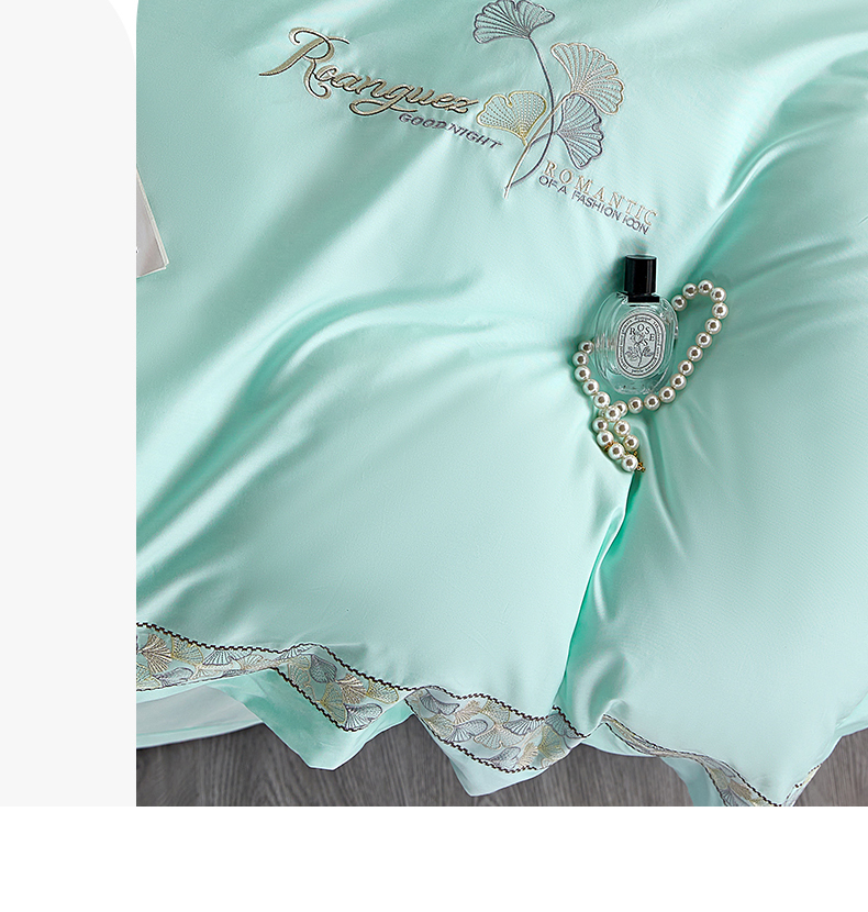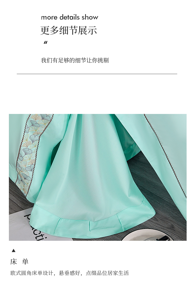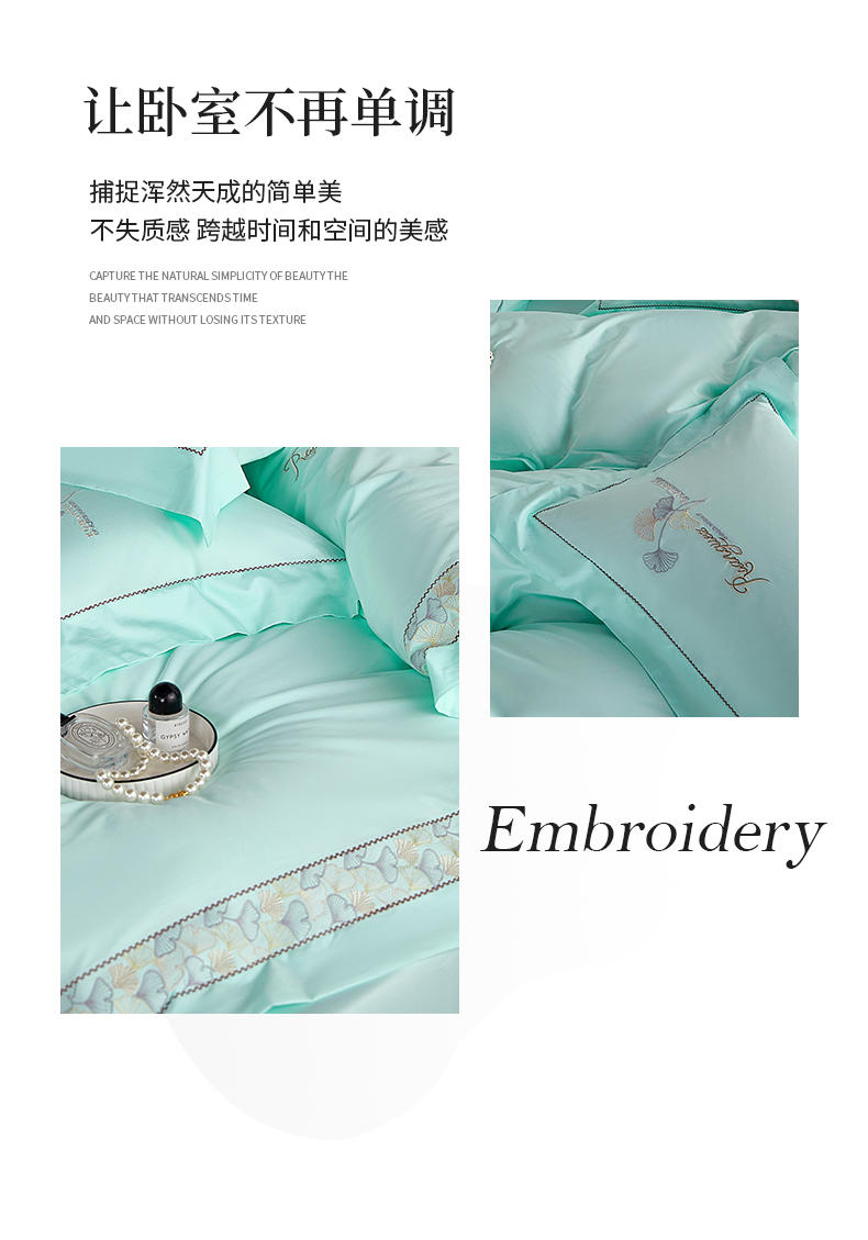 商品名称:浩情国际婚庆供货中心 2026新款160S春夏天丝棉高端刺绣系列四件套 银之杏-湖水蓝