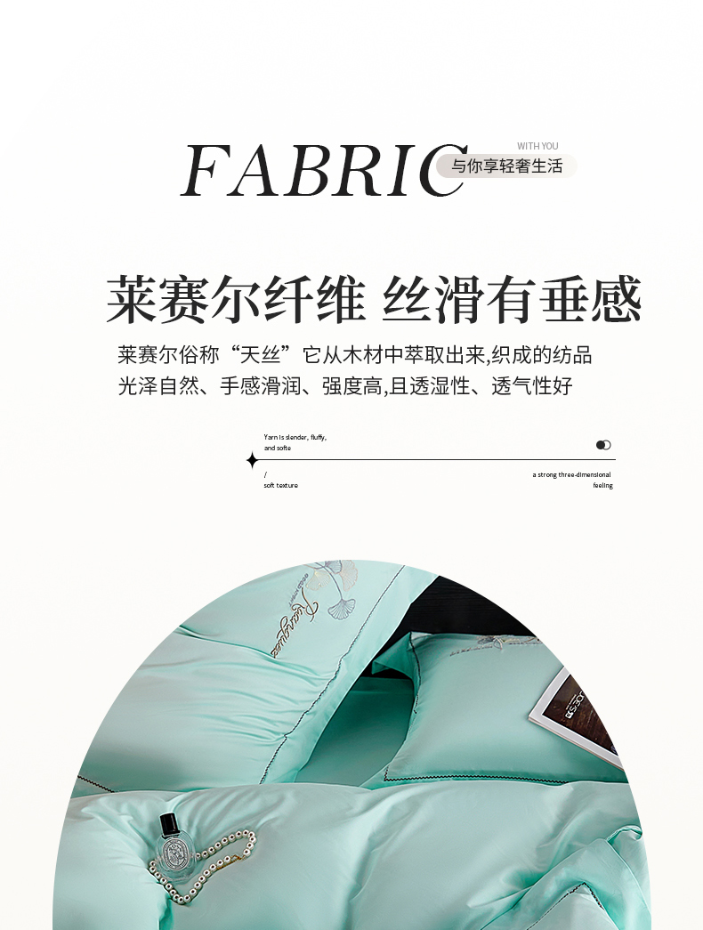 浩情国际婚庆供货中心 2026新款160S春夏天丝棉高端刺绣系列四件套 银之杏-湖水蓝