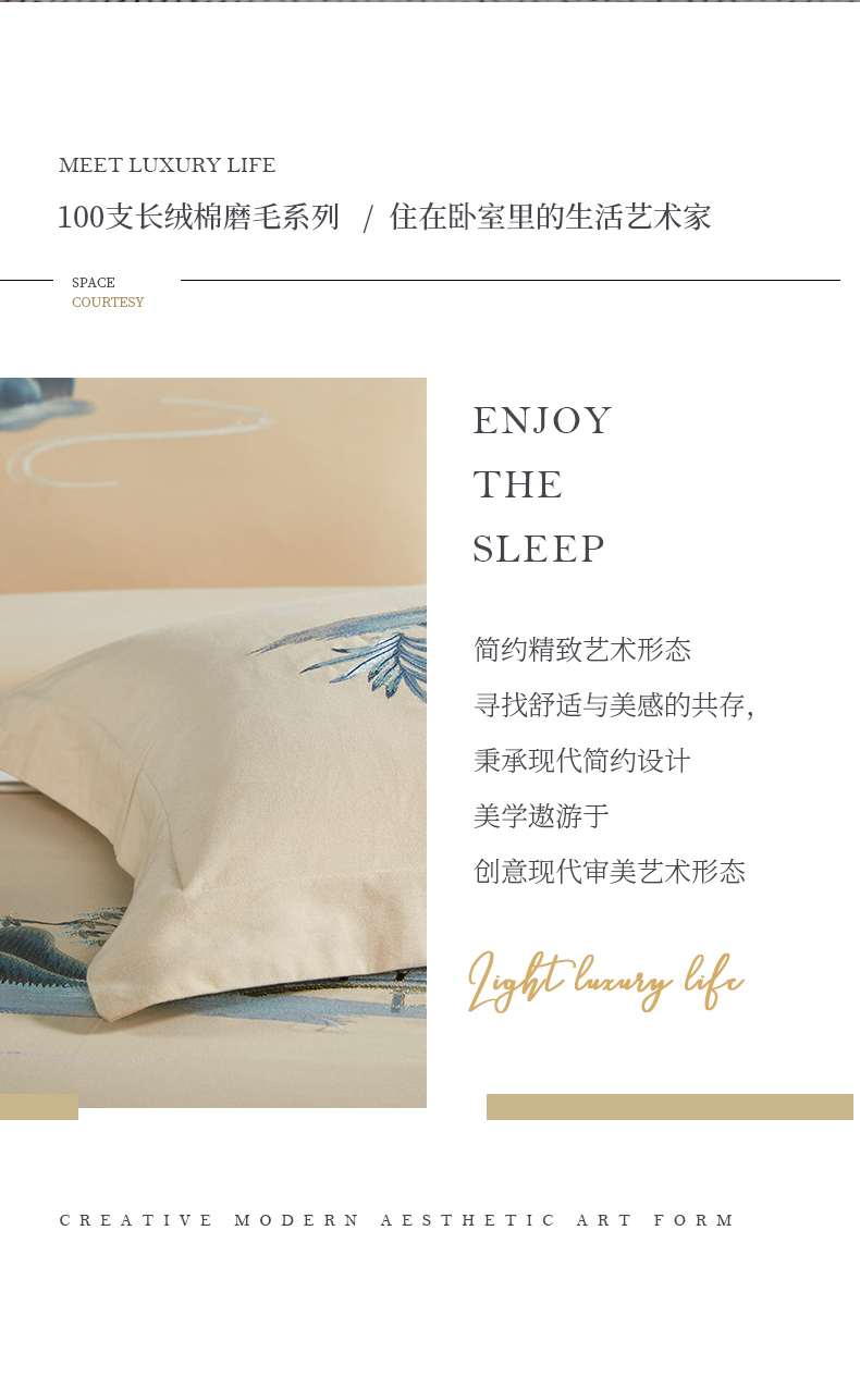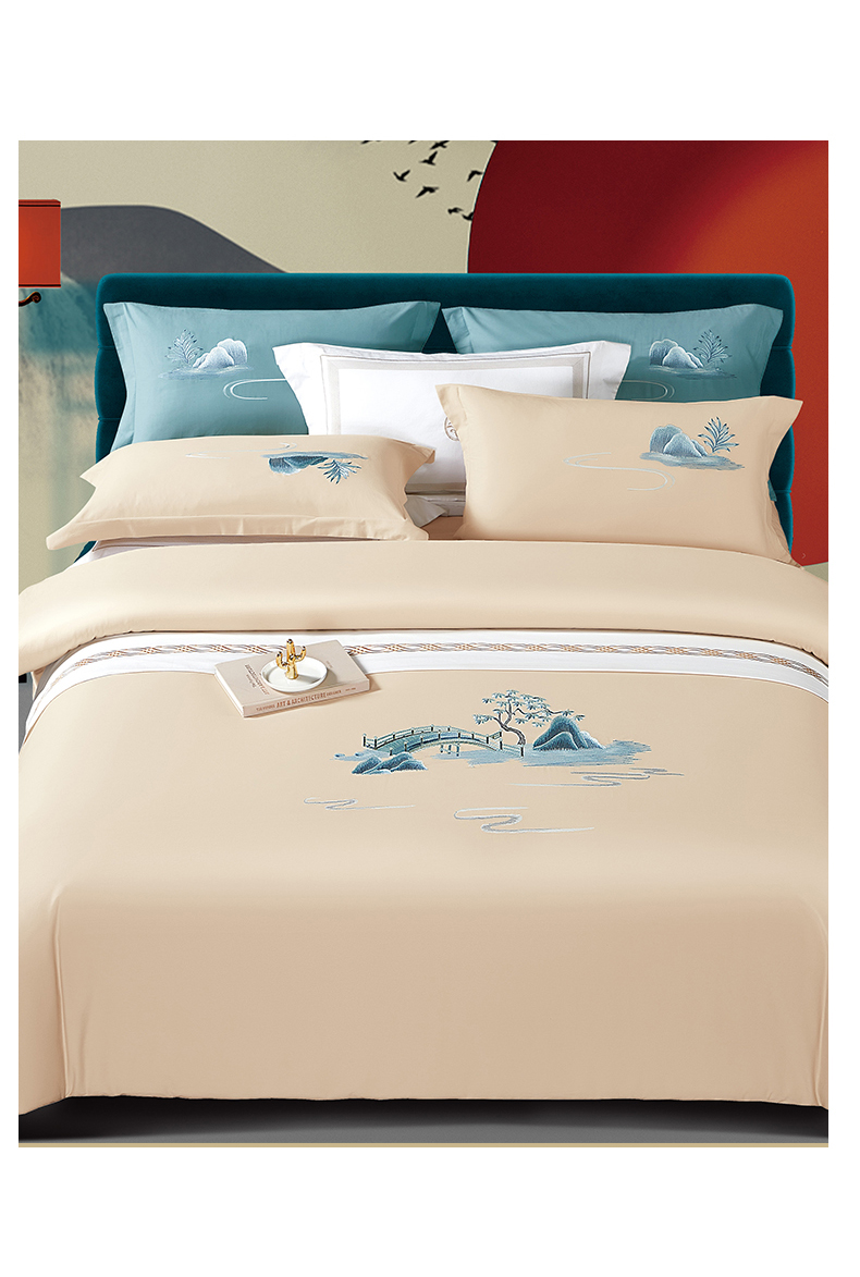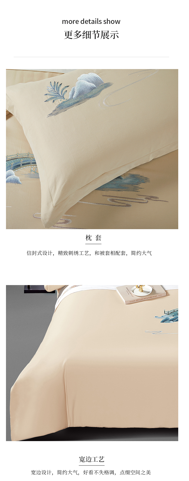 商品名称:浩情国际婚庆供货中心 2026新品-100支全棉长绒棉磨毛高端刺绣系列四件套 山水情-米驼