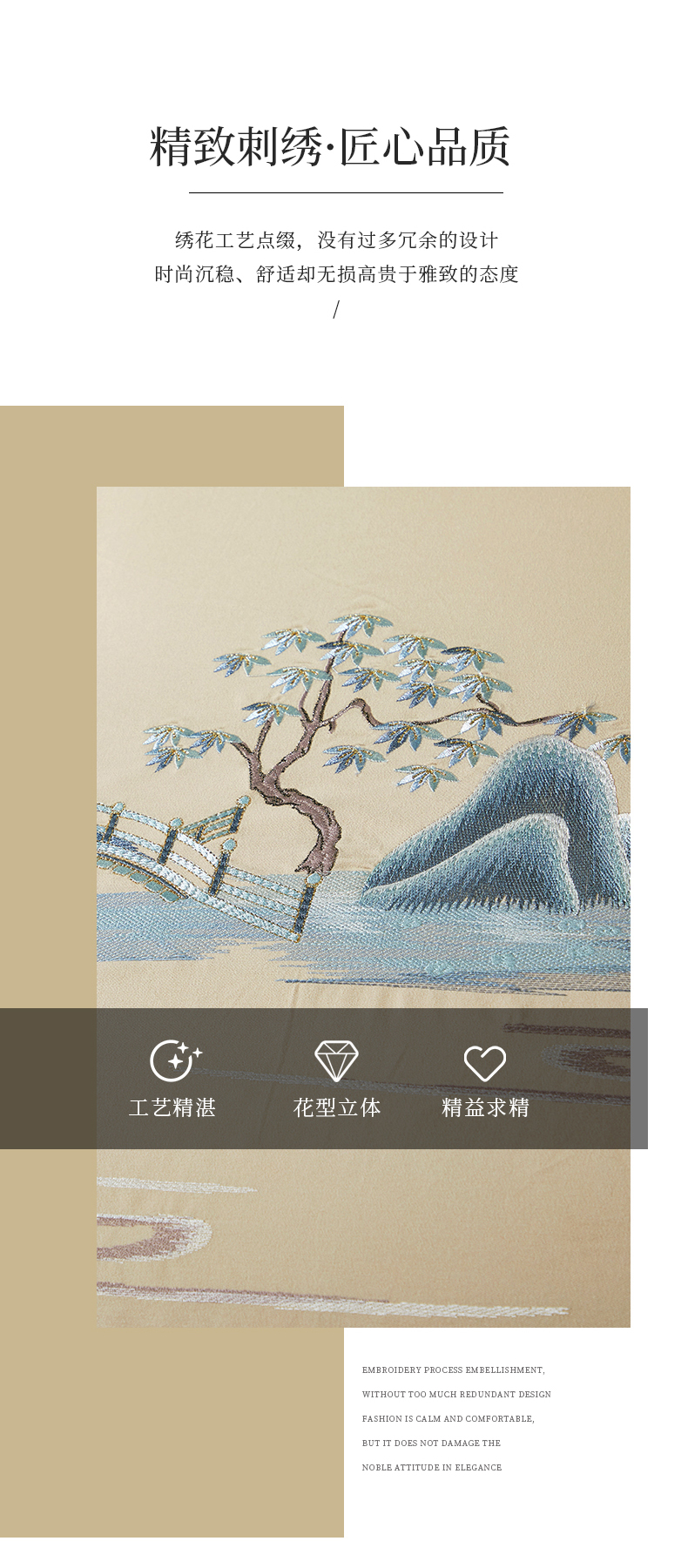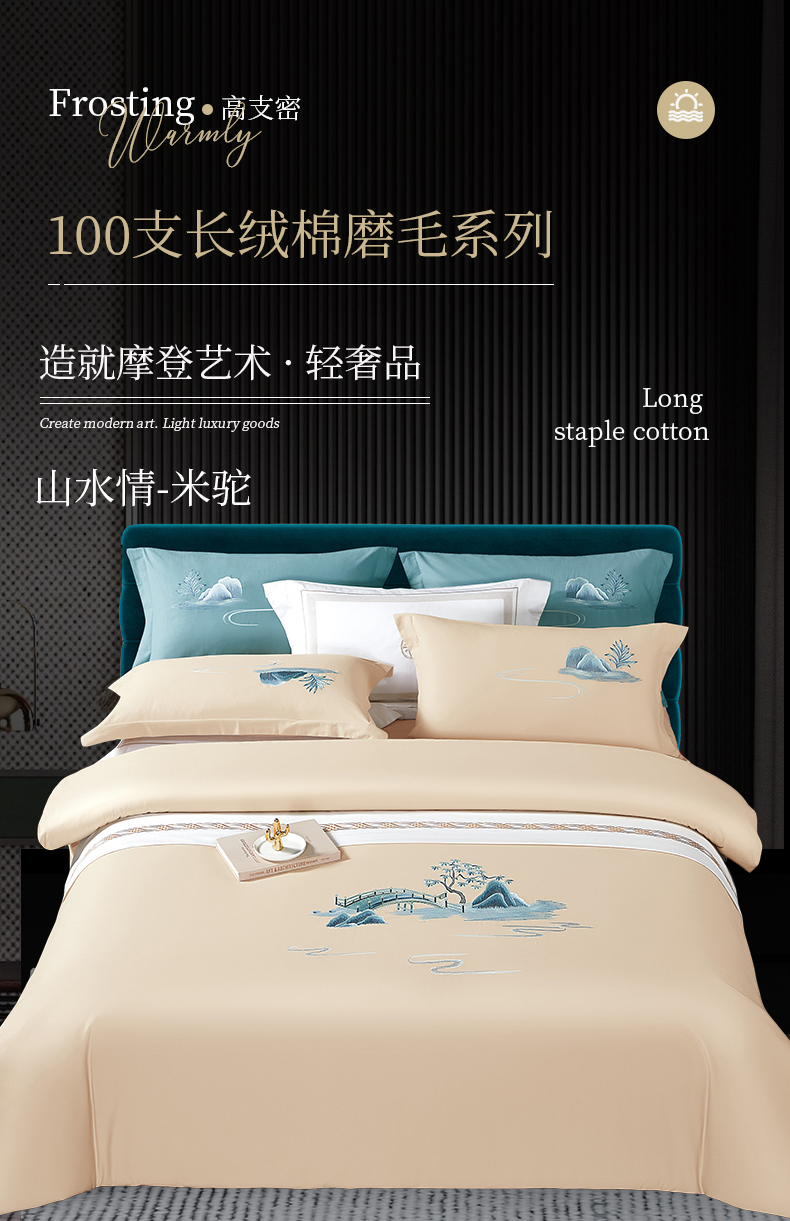 浩情国际婚庆供货中心 2026新品-100支全棉长绒棉磨毛高端刺绣系列四件套 山水情-米驼