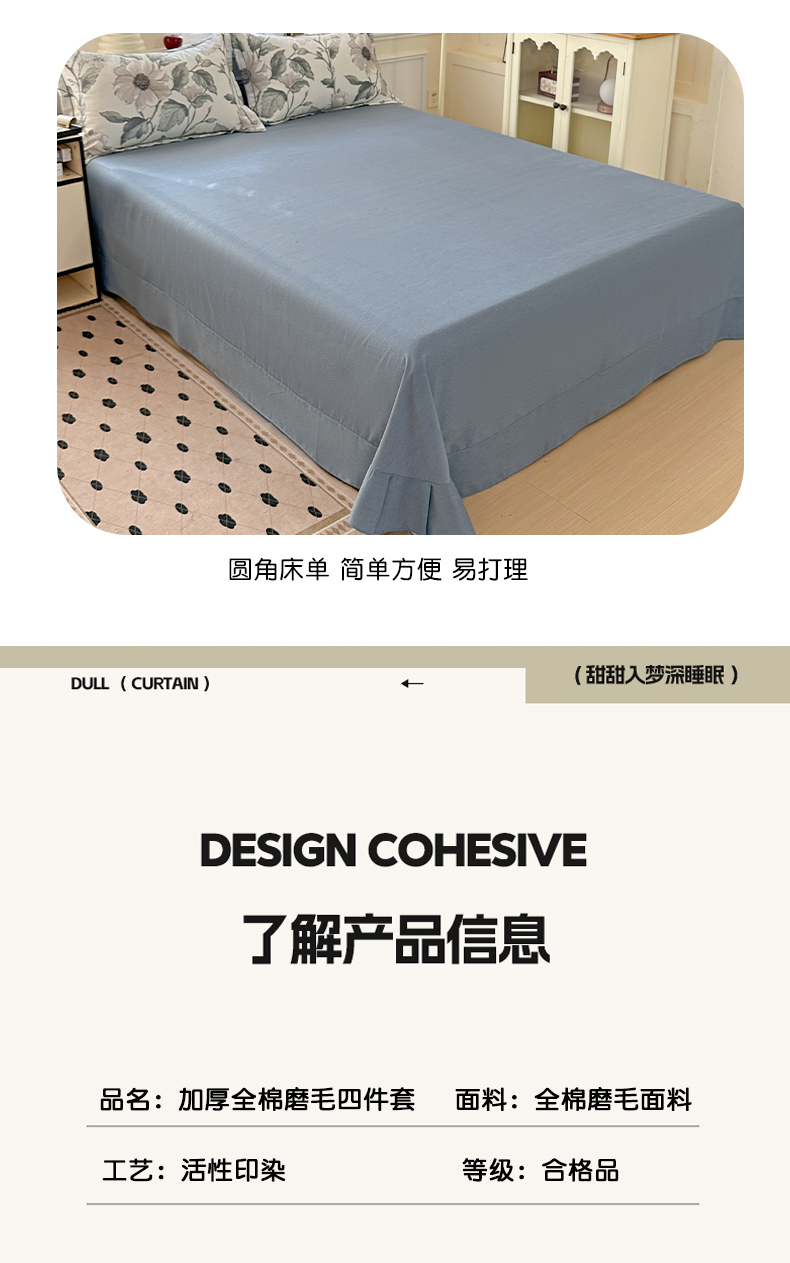商品名称:曲之慕 2026新款全棉纯棉加厚喷气磨毛印花四件套 蓝汐