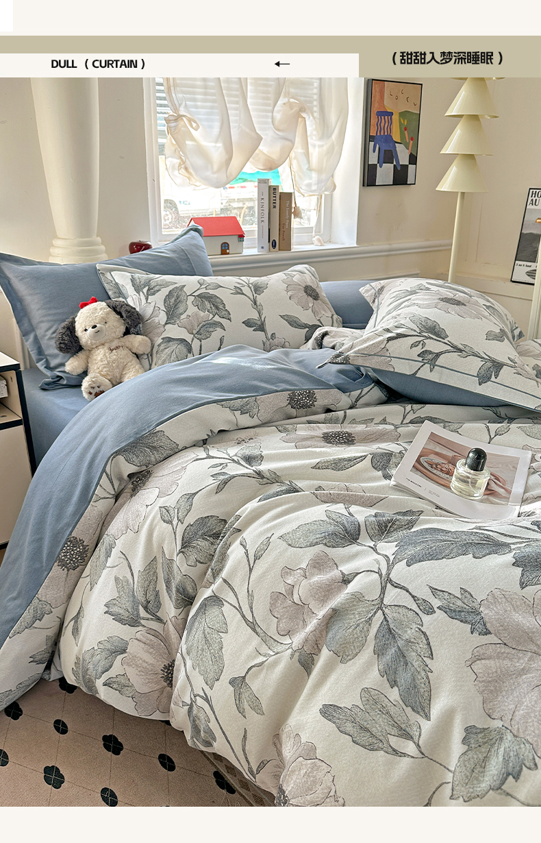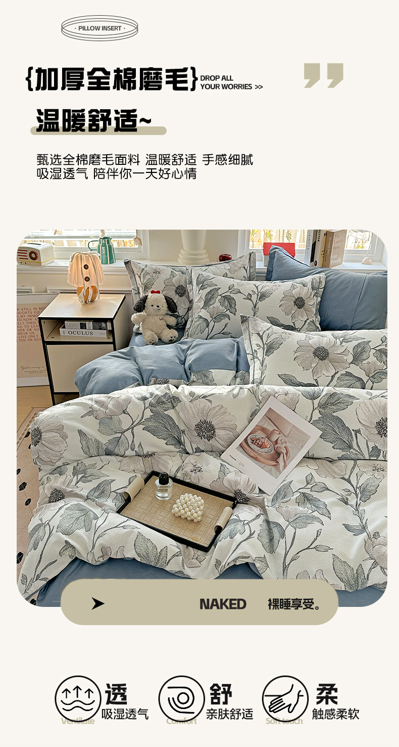 (总)曲之慕 2026新款全棉纯棉加厚喷气磨毛印花四件套,浅花悠悠,林见兔,波西米亚,花舞悠然,卡尼亚,克莱尔,米莱,米莱-兰,米莱-紫,向阳花开,南瓜屋,爱意浓,吾安心,登威熊,芬迪,花恬,花意,空间,晚秋,幽羽,费洛斯,浅香,秋叶,啬园,汀兰,云梦泽,艾格拉,蓝汐,蓝漾,萝莉,暖漾,绮梦,青枝语,秋韵,柔晖,絮语,紫韵,爱意花间,花蕊粉,四叶草,幽梦玉