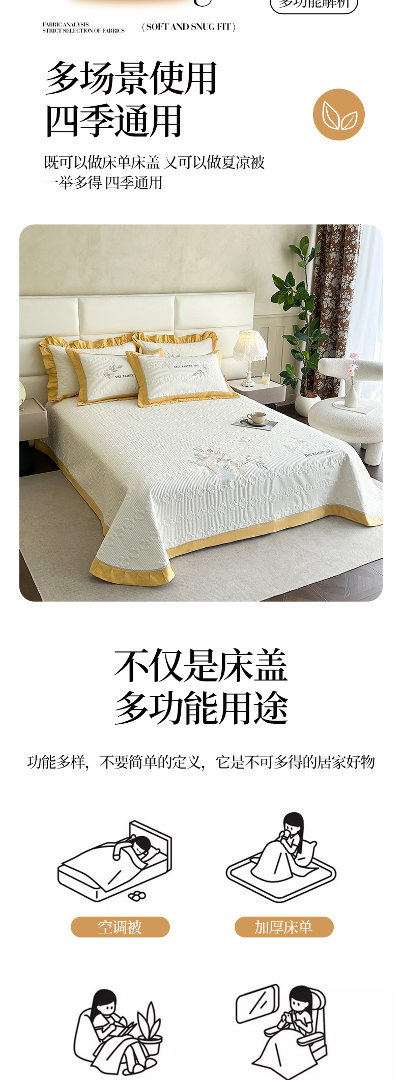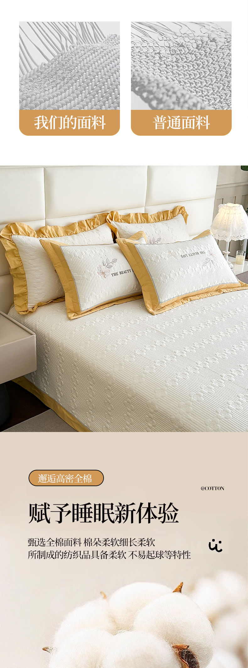 商品名称:紫碧螺家纺 2025新款全棉水洗绣花欧式床盖 奶昔-黄边