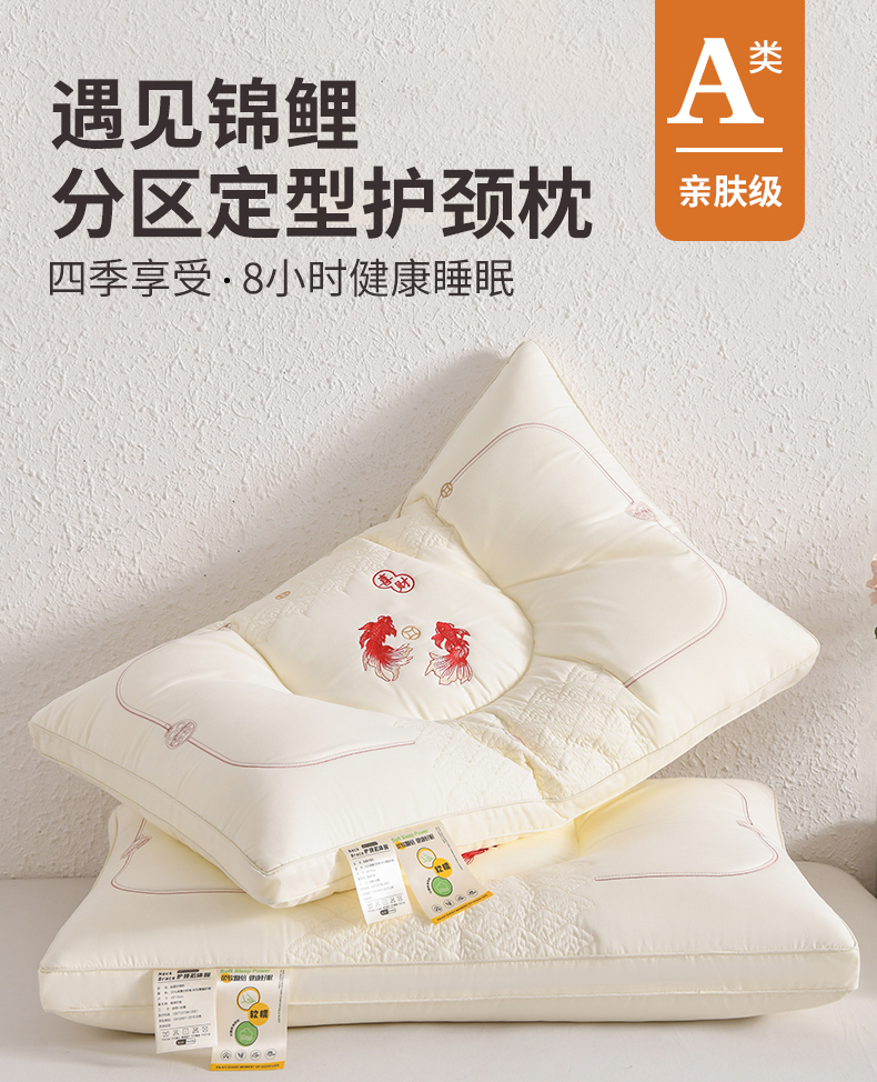 商品名称:鼎晟纺 2025新款绣花款遇见锦鲤分区定型枕学生枕头成人枕芯 遇见锦鲤-白色一对装