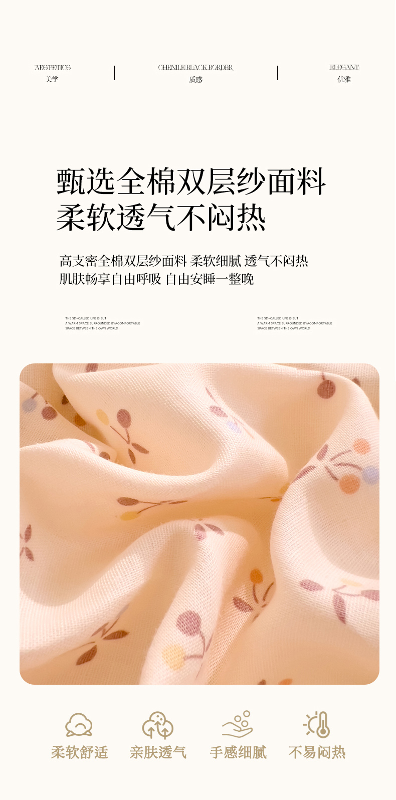 当前位置: 91家纺网 > 商品网购 > 床品套件 > 四件套 > 全棉普通四件套 > DoDo 兜兜 2026新款全棉纯棉柔软双层纱套件系列(可定做尺寸) 乔安娜