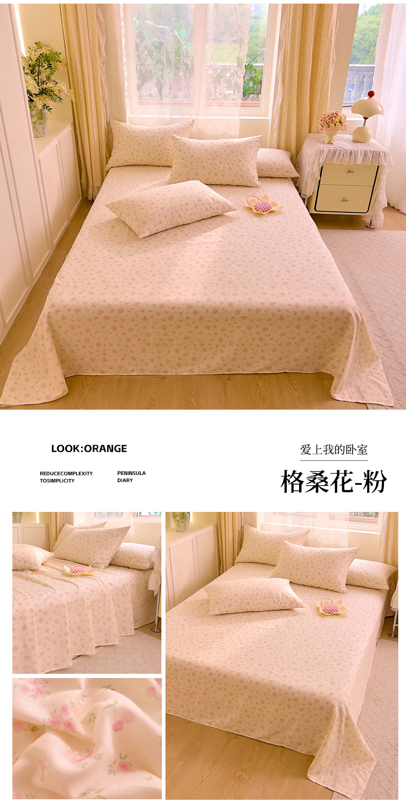• 91家纺网 家纺一手货源 找家纺 DoDo 兜兜 2026新款全棉纯棉柔软双层纱单品床单系列(可定做尺寸) 含笑-粉