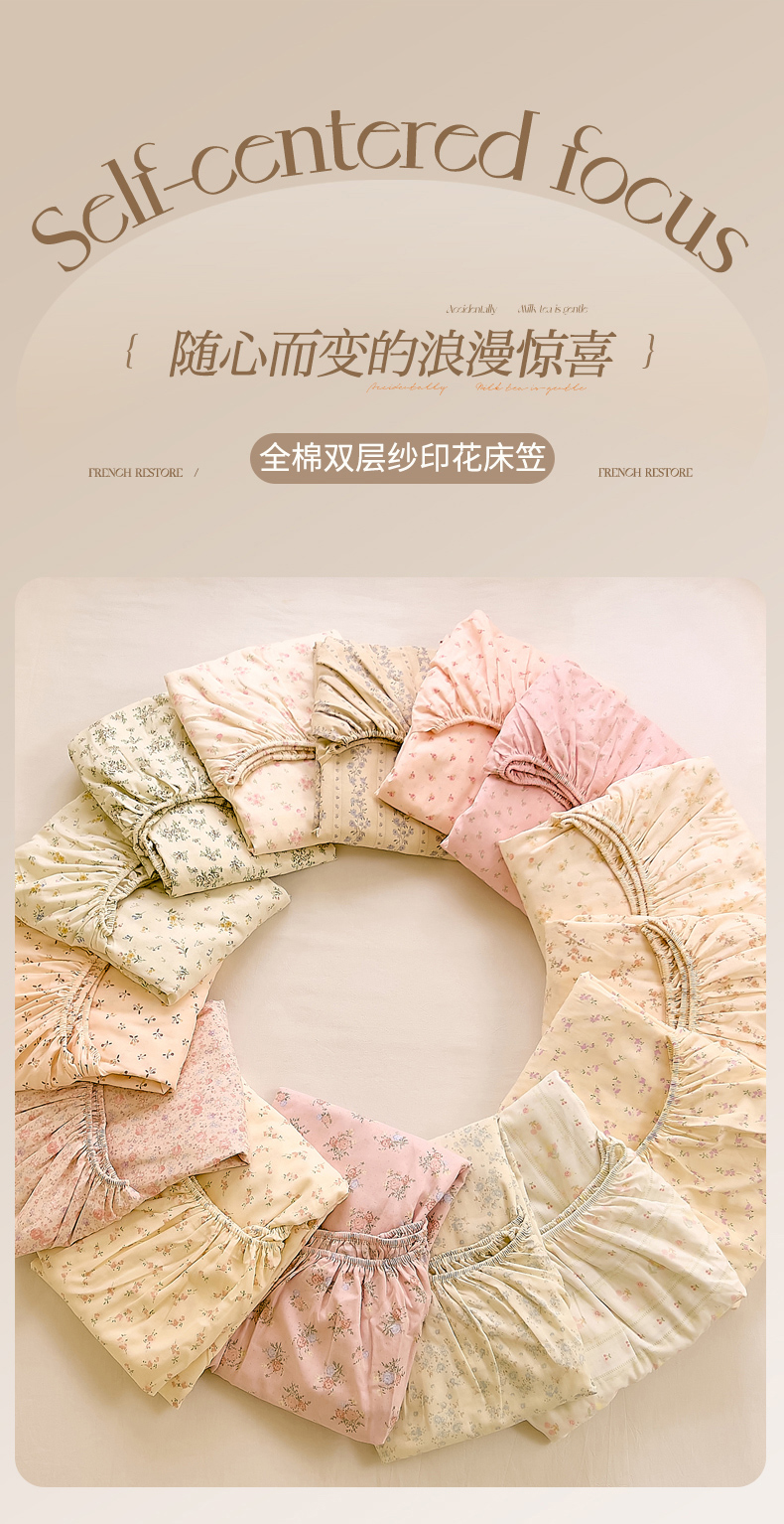 • 91家纺网 家纺一手货源 找家纺 DoDo 兜兜 2026新款全棉纯棉柔软双层纱单品床笠系列(可定做尺寸) 甜梦